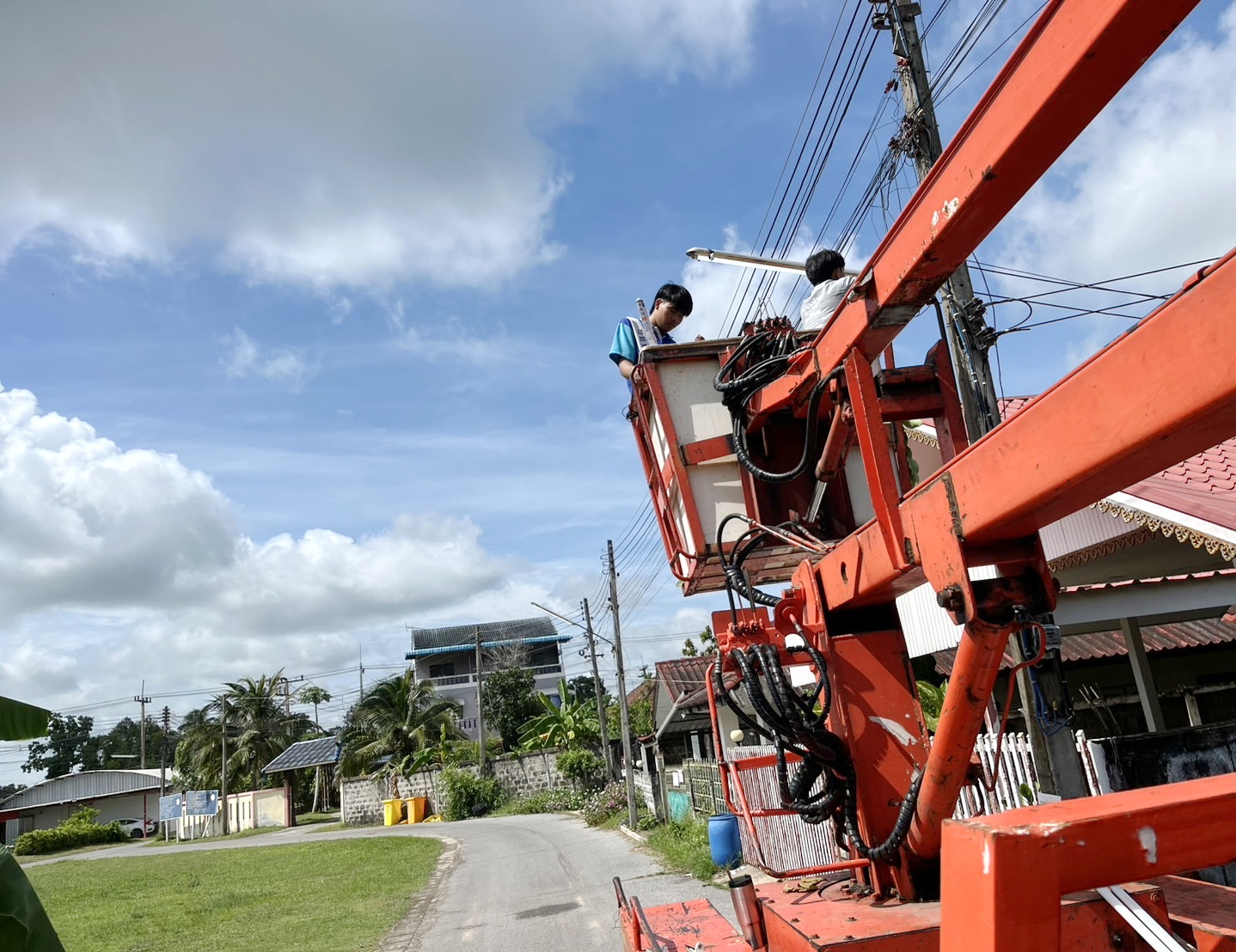 เทศบาลตำบลตาดทอง ลงพื้นที่ซ่อมแซมไฟฟ้าส่องสว่างสาธารณะในพื้นที่ตำบลตาดทอง อำเภอเมืองยโสธร จังหวัดยโสธร