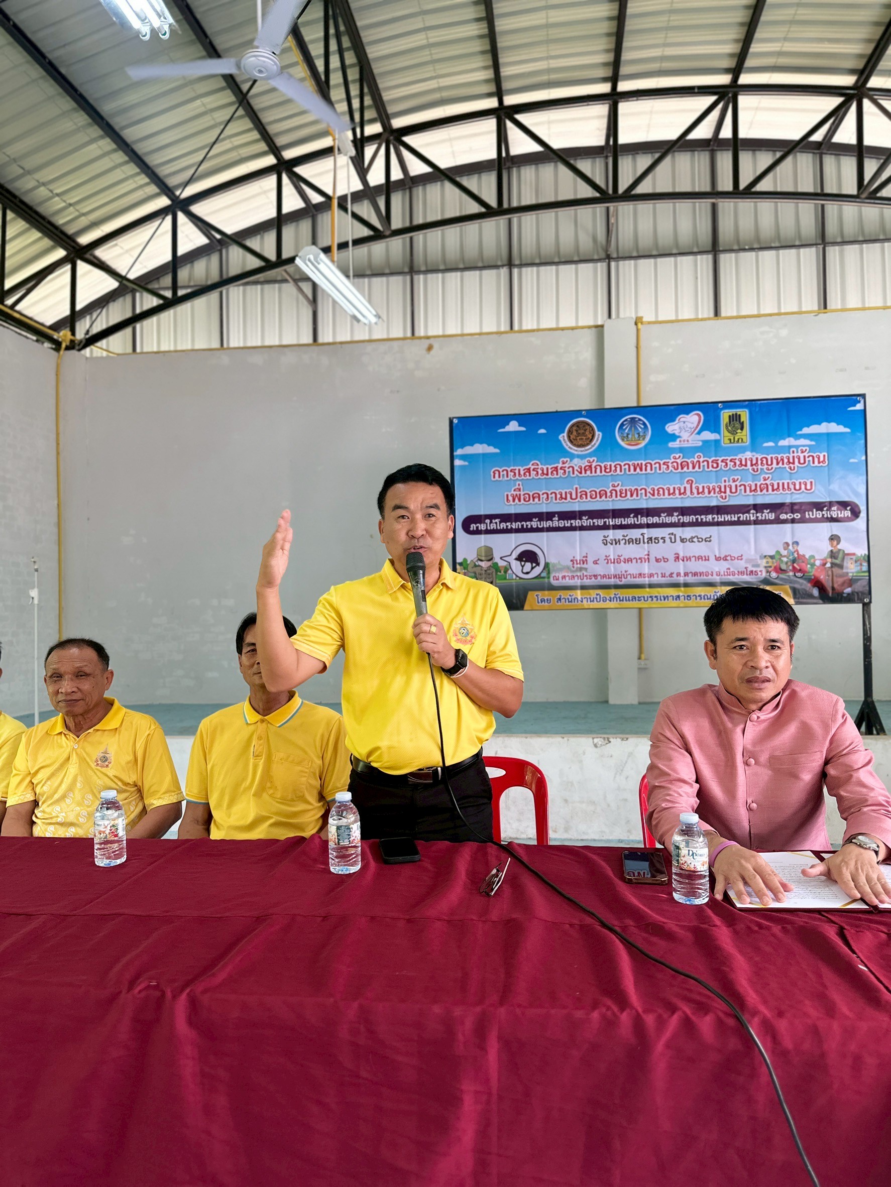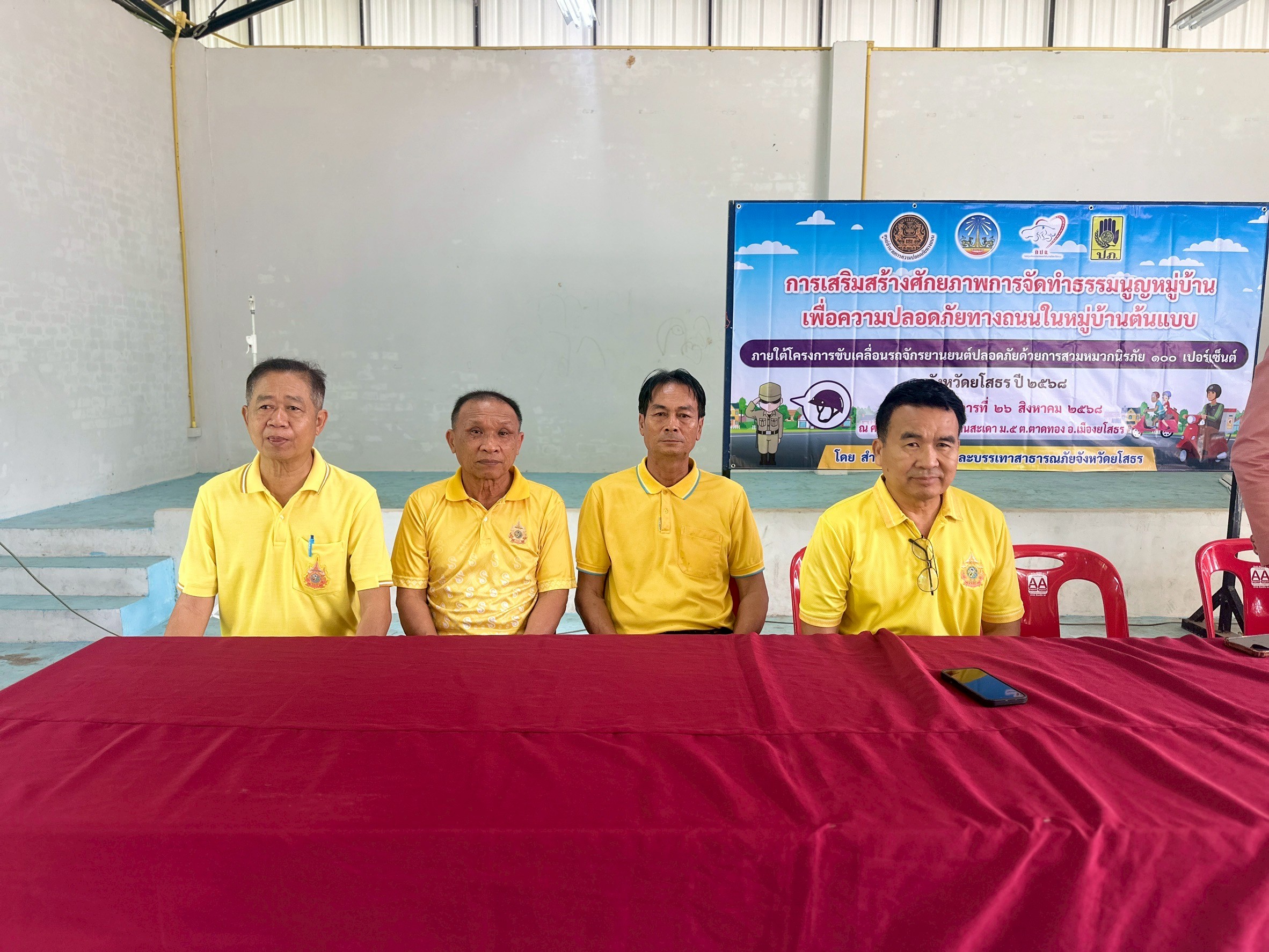 วันอังคารที่ 26 สิงหาคม พ.ศ. 2568 เวลา 08.30 น. นางสาวภัคสุนันท์ คำลือ นายกเทศมนตรีตำบลตาดทอง ร่วมเปิดโครงการขับเคลื่อนการขับขี่รถจักรยานยนต์ปลอดภัยด้วยการสวมหมวกกันน็อกนิรภัย 100 เปอร์เซ็นต์ จังหวัดยโสธรปี 2568 โดยมีนายวิเชียร สุดาทิพย์ นายอำเภอเมืองยโสธร เป็นประธานพิธี พร้อมด้วย คณะผู้บริหาร สมาชิกสภาเทศบาลฯ หัวหน้าส่วนราชการ ผู้นำชุมชน และผู้เข้าร่วมโครงการฯ วัตถุประสงค์เพื่อขับเคลื่อนการเสริมสร้างศักยภาพการจัดทำธรรมนูญหมู่บ้านเพื่อความปลอดภัยทางถนนในหมู่บ้านต้นแบบ