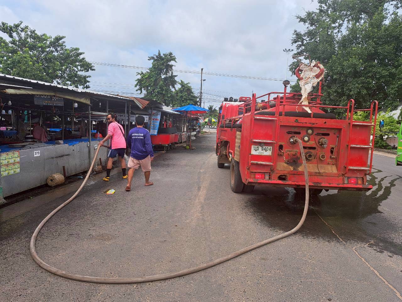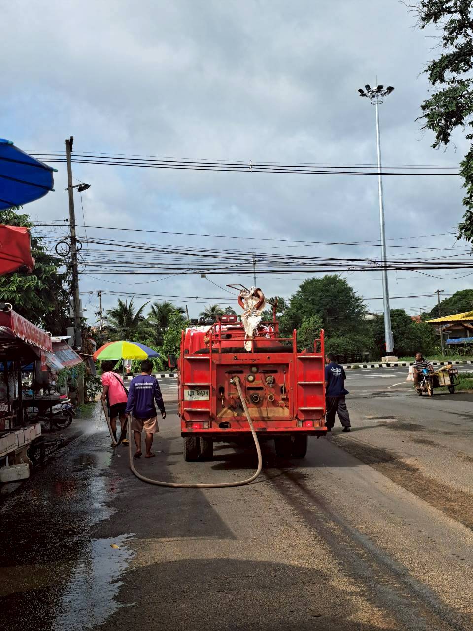 วันอังคารที่ 26 สิงหาคม พ.ศ. 2568 เวลา 08.30 น. นางสาวภัคสุนันท์ คำลือ นายกเทศมนตรีตำบลตาดทอง มอบหมายให้ กองสาธารณสุขฯ ร่วมกับ งานป้องกันฯ สำนักปลัด เทศบาลตำบลตาดทอง ลงพื้นที่ทำความสะอาด "ล้างตลาดสดเทศบาลตำบลตาดทอง" โดยทำความสะอาดล้างบริเวณคลองน้ำ และล้างตลาดสดเทศบาลตำบลตาดทอง ตามหลักสุขาภิบาล พร้อมปรับปรุงสภาพแวดล้อมภายในและภายนอกให้สะอาด ปลอดภัย ป้องกันการแพร่ระบาดของโรค สร้างความมั่นใจให้กับพ่อค้า แม่ค้า และประชาชนที่มาใช้บริการ ตลาดสดเทศบาลตำบลตาดทอง