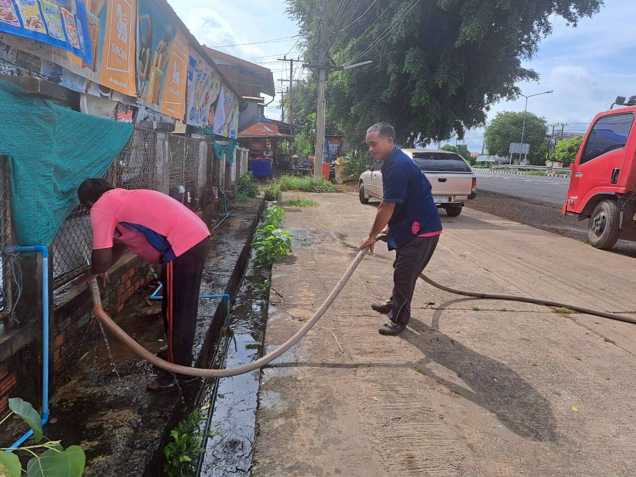 กองสาธารณสุขและสิ่งแวดล้อม ร่วมกับ งานป้องกันฯ สำนักปลัด เทศบาลตำบลตาดทอง ทำความสะอาดบริเวณคลองน้ำ และล้างตลาดสดเทศบาลตำบลตาดทอง ตำบลตาดทอง อำเภอเมืองยโสธร จังหวัดยโสธร