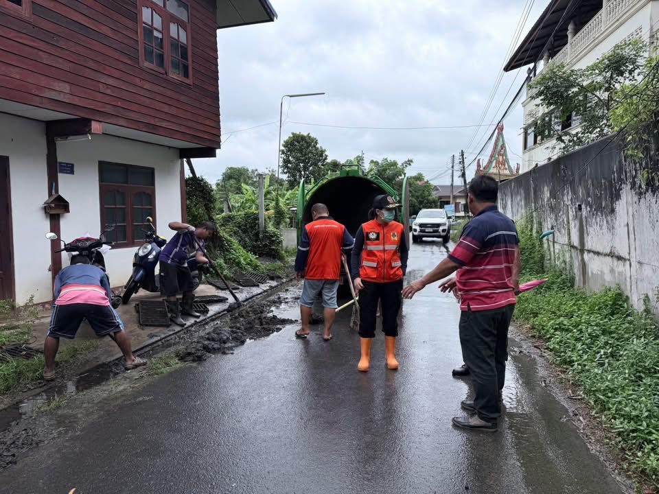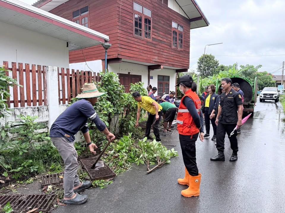 วันจันทร์ที่ 29 กันยายน พ.ศ. 2568 นางสาวภัคสุนันท์ คำลือ นายกเทศมนตรีตำบลตาดทอง พร้อมด้วย คณะผู้บริหาร สมาชิกสภาเทศบาลฯ โดยมี จ่าสิบเอกวิลาศ ยินงาม นักป้องกันฯ และงานป้องกันฯ สำนักปลัด กองสาธารณสุขฯ เทศบาลตำบลตาดทอง ร่วมกับผู้นำชุมชนและประชาชนจิตอาสา ลงพื้นที่ฉีดล้างทำความสะอาดร่องระบายน้ำ ขุดลอกคลองน้ำ ทำความสะอาดพื้นที่ บริเวณหลังวัดโพธิ์ศรีมงคล บ้านตาดทอง หมู่ที่ 1 เพื่อปรับปรุงสภาพแวดล้อมภายในและภายนอกให้สะอาด ปลอดภัย ป้องกันการแพร่ระบาดของโรค สร้างความมั่นใจให้กับประชาชนที่อยู่อาศัย