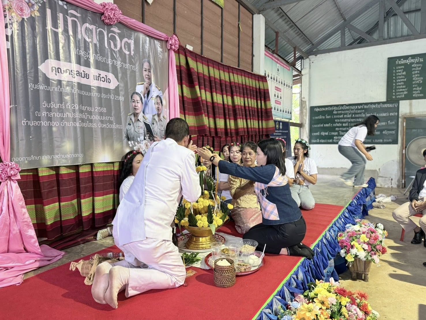 วันจันทร์ที่ 29 กันยายน 2568 นางสาวภัคสุนันท์ คำลือ นายกเทศมนตรีตำบลตาดทอง ประธานในพิธี พร้อมด้วย คณะผู้บริหาร สมาชิกสภาเทศบาลฯ ว่าที่ร้อยตรีพิชิต กันยาวรรณ ปลัดเทศบาลฯ หัวหน้าส่วนราชการ ผู้นำชุมชน พนักงานเทศบาลตำบลตาดทอง และแขกผู้มีเกียรติ เข้าร่วมกิจกรรมการจัดงานเกษียณอายุราชการพนักงานครูเทศบาล ราย นางละมัย แก้วใจ ตำแหน่ง ครู คศ.2 ปฏิบัติราชการ ณ ศูนย์พัฒนาเด็กเล็กบ้านดอนมะยาง สังกัด สํานักงานเทศบาลตำบลตาดทอง เพื่อแสดงความขอบคุณและเชิดชูเกียรติที่ท่านได้อุทิศตนปฏิบัติงานด้วยความวิริยะอุตสาหะให้กับเทศบาลตำบลตาดทอง ตลอดระยะเวลาการรับราชการ