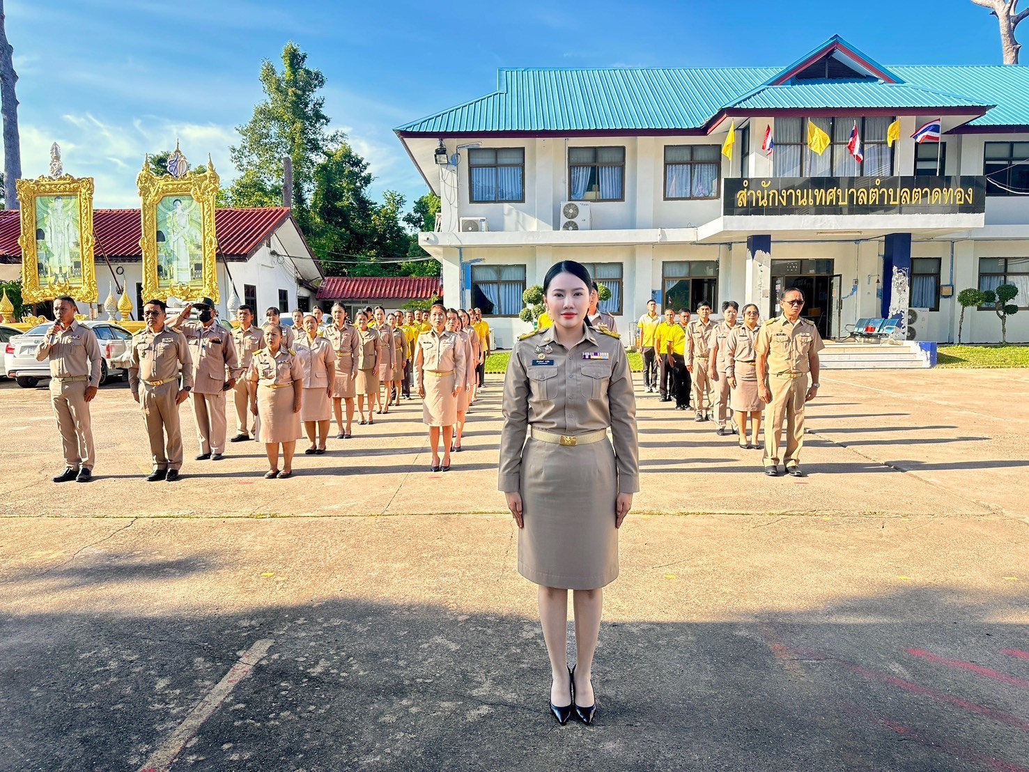 วันจันทร์ที่ 6 ตุลาคม 2568 เวลา 08.00 น. นางสาวภัคสุนันท์ คำลือ นายกเทศมนตรีตำบลตาดทอง พร้อมด้วย คณะผู้บริหาร ว่าที่ร้อยตรีพิชิต กันยาวรรณ ปลัดเทศบาลฯ รองปลัดเทศบาลฯ หัวหน้าส่วนราชการ นำข้าราชการและพนักงานเทศบาลตำบลตาดทอง เข้าแถวเคารพธงชาติ สวดมนต์ไหว้พระ บริเวณด้านหน้าเสาธง เทศบาลตำบลตาดทอง เพื่อแสดงออกถึงความจงรักภักดีเทิดสถาบันชาติ ศาสนา และพระมหากษัตริย์ ความรักความสามัคคี มีระเบียบวินัย