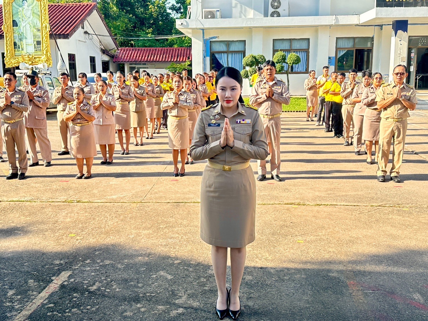 เทศบาลตำบลตาดทอง เข้าแถวเคารพธงชาติ สวดมนต์ไหว้พระ เพื่อแสดงออกถึงความจงรักภักดีเทิดสถาบันชาติ ศาสนา และพระมหากษัตริย์