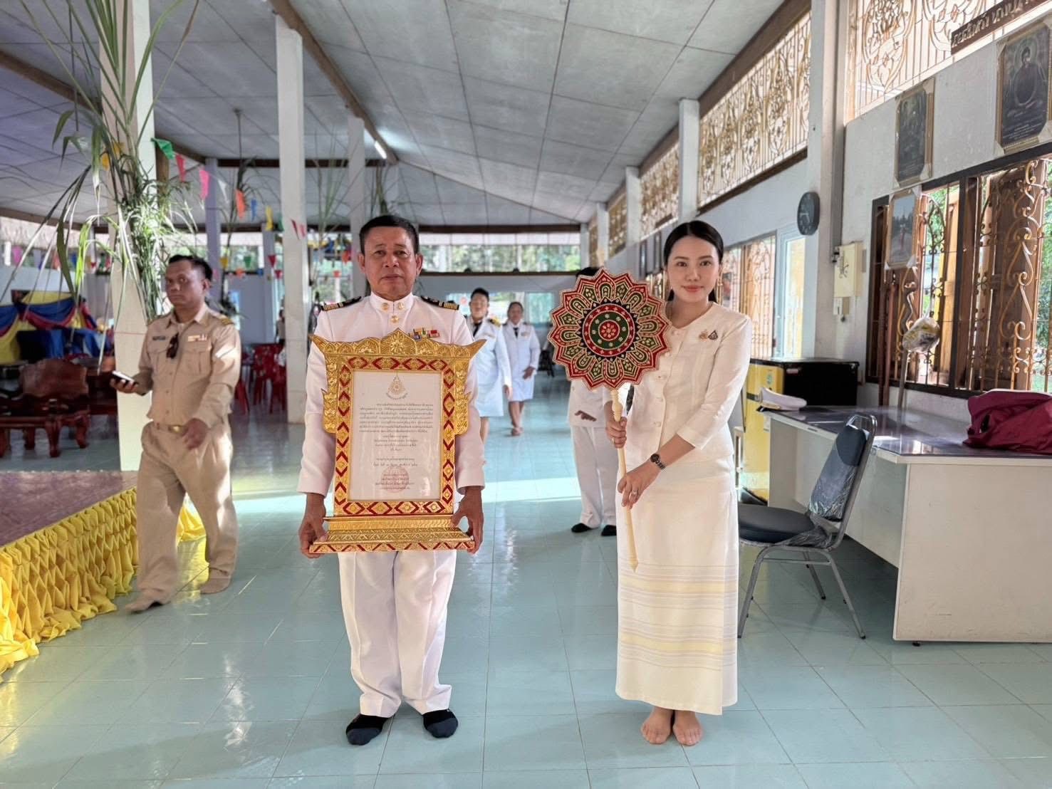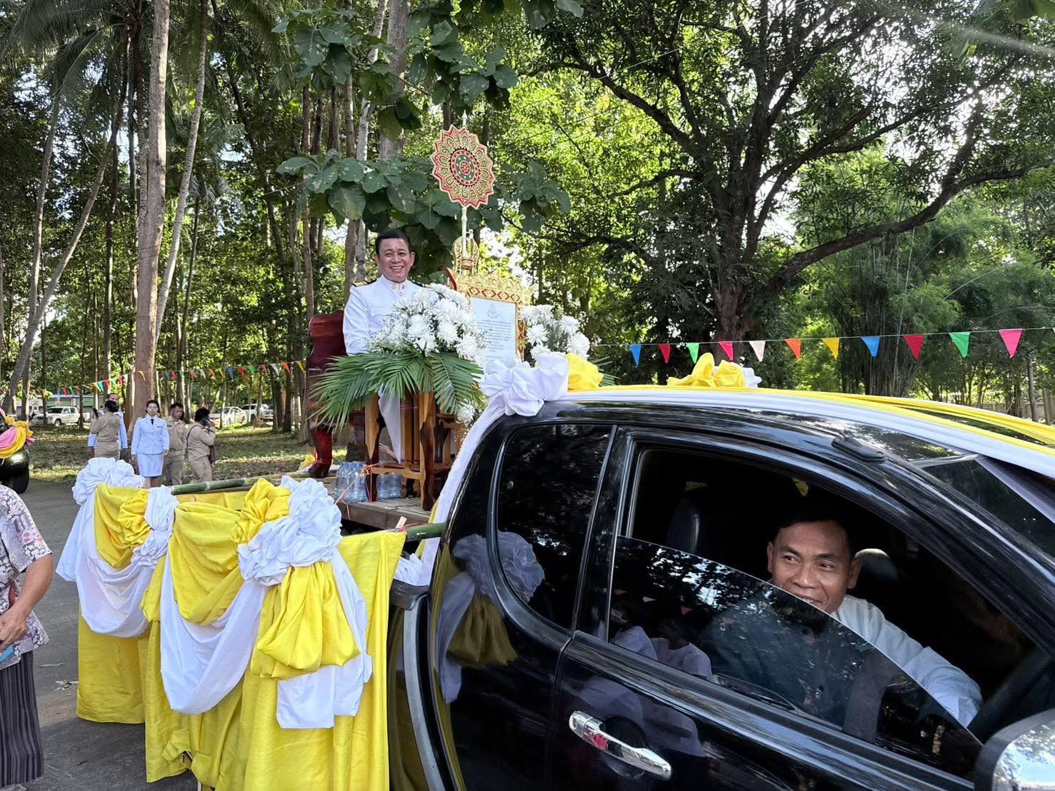 วันเสาร์ที่ 18 ตุลาคม พ.ศ.2568 เวลา 14.00 น. ที่ผ่านมา นางสาวภัคสุนันท์ คำลือ นายกเทศมนตรีตําบลตาดทอง พร้อมด้วย คณะผู้บริหาร สมาชิกสภาเทศบาลฯ หัวหน้าส่วนราชการ กำนัน ผู้ใหญ่บ้านตำบลตาดทอง พนักงานเทศบาลฯ พี่น้องชาวตำบลตาดทองและแขกผู้มีเกียรติพื้นที่ใกล้เคียง ร่วมแสดงความเคารพในงานมุทิตาสักการะพิธีฉลองสัญญาบัตร-พัดยศ (พระครูวิโสธนาจารย์) โดยมีขบวนพิธีแห่ สัญญาบัตร-พัดยศรอบบริเวณหมู่บ้านในพื้นที่ตำบลตาดทองไปที่วัดวิโสธนาราม บ้านกิโลสาม หมู่ที่ 10 ตำบลตาดทอง