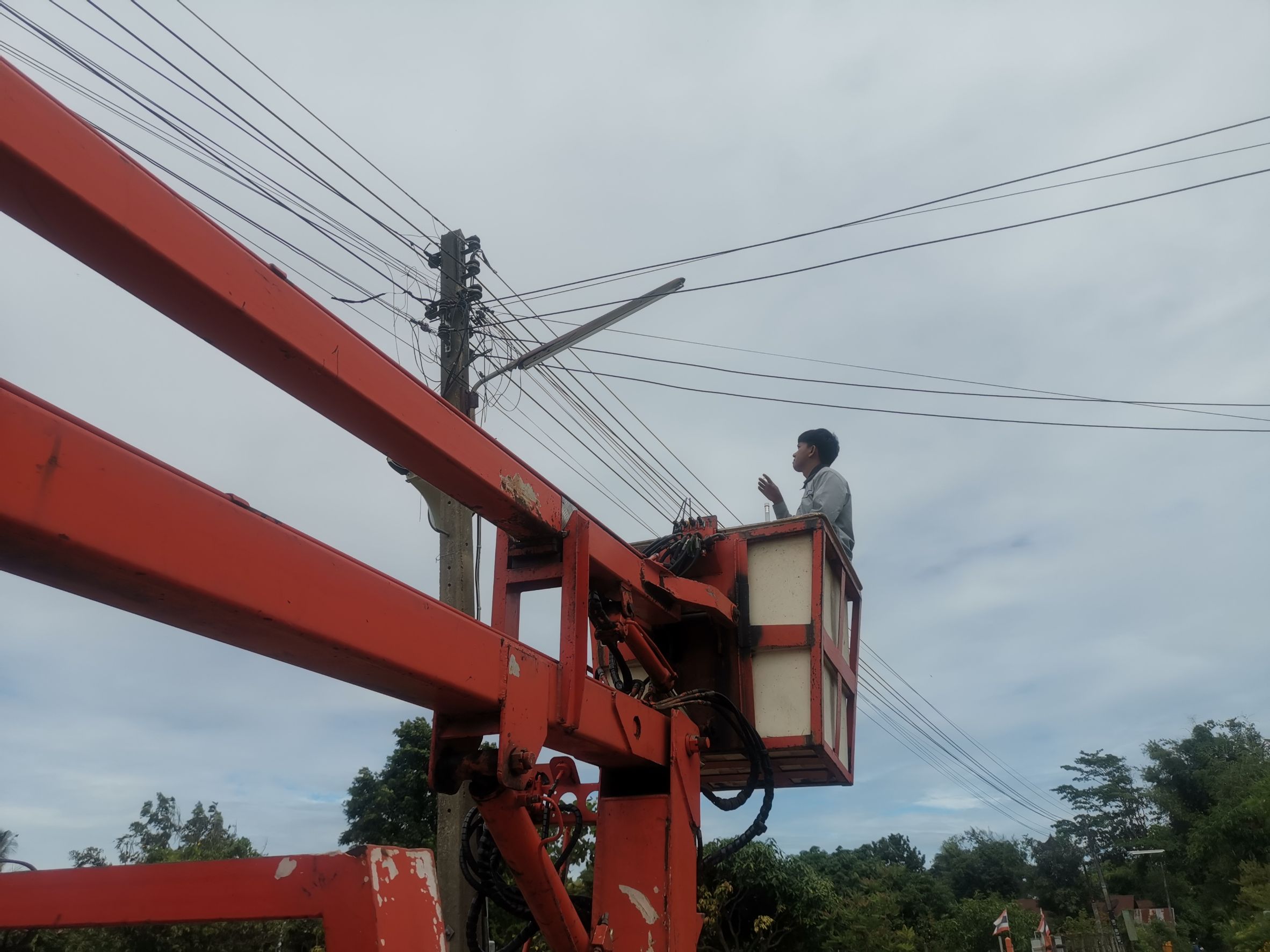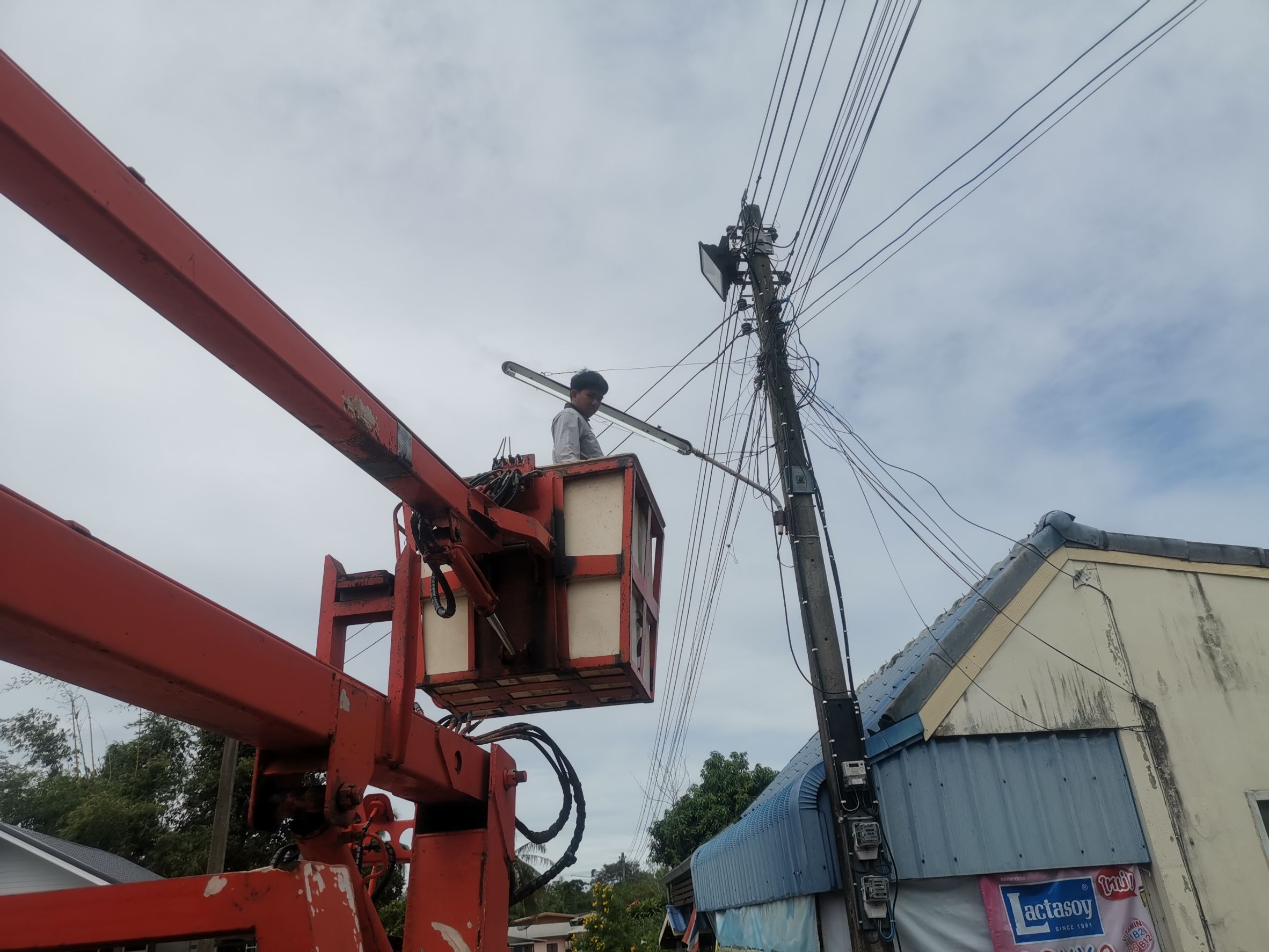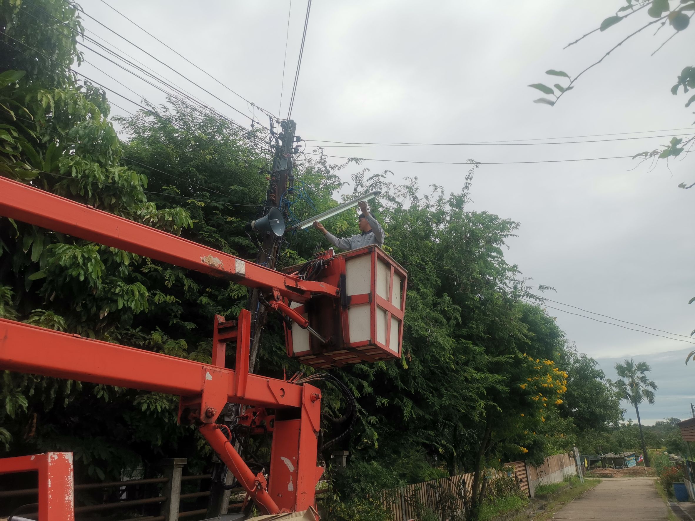เทศบาลตำบลตาดทอง ลงพื้นที่ซ่อมแซมไฟฟ้าส่องสว่างสาธารณะในพื้นที่ตำบลตาดทอง อำเภอเมืองยโสธร จังหวัดยโสธร