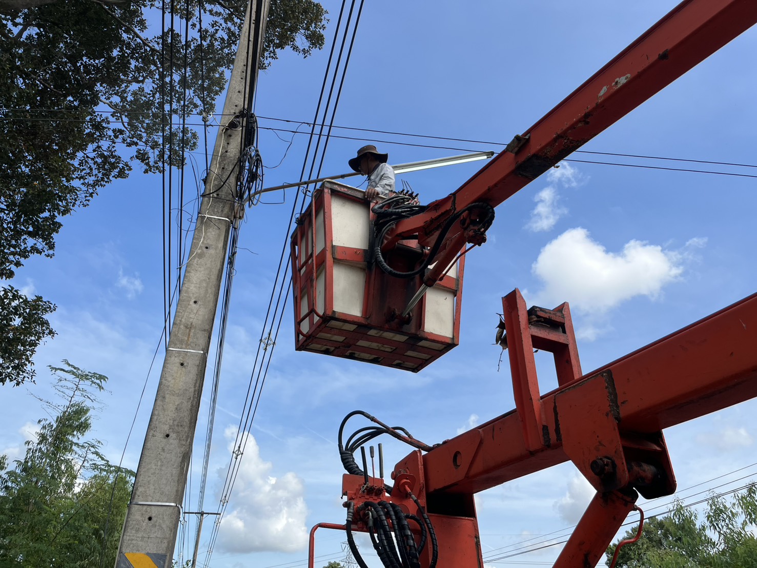 เทศบาลตำบลตาดทอง ลงพื้นที่ซ่อมแซมไฟฟ้าส่องสว่างสาธารณะในพื้นที่ตำบลตาดทอง อำเภอเมืองยโสธร จังหวัดยโสธร