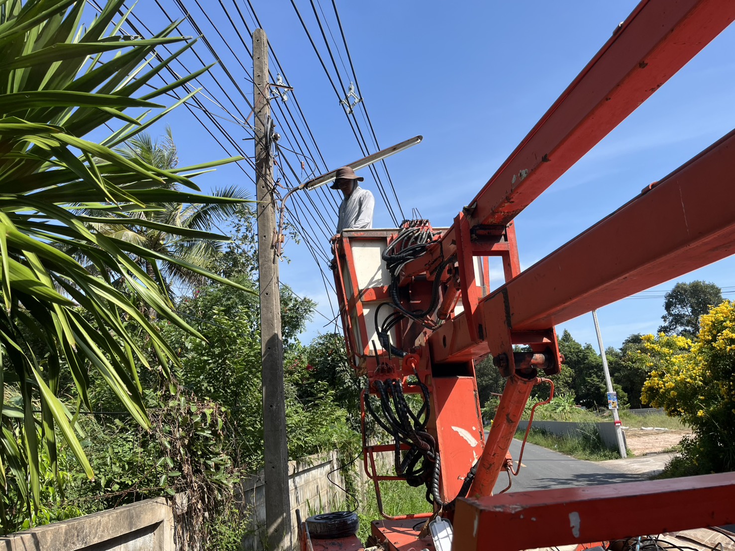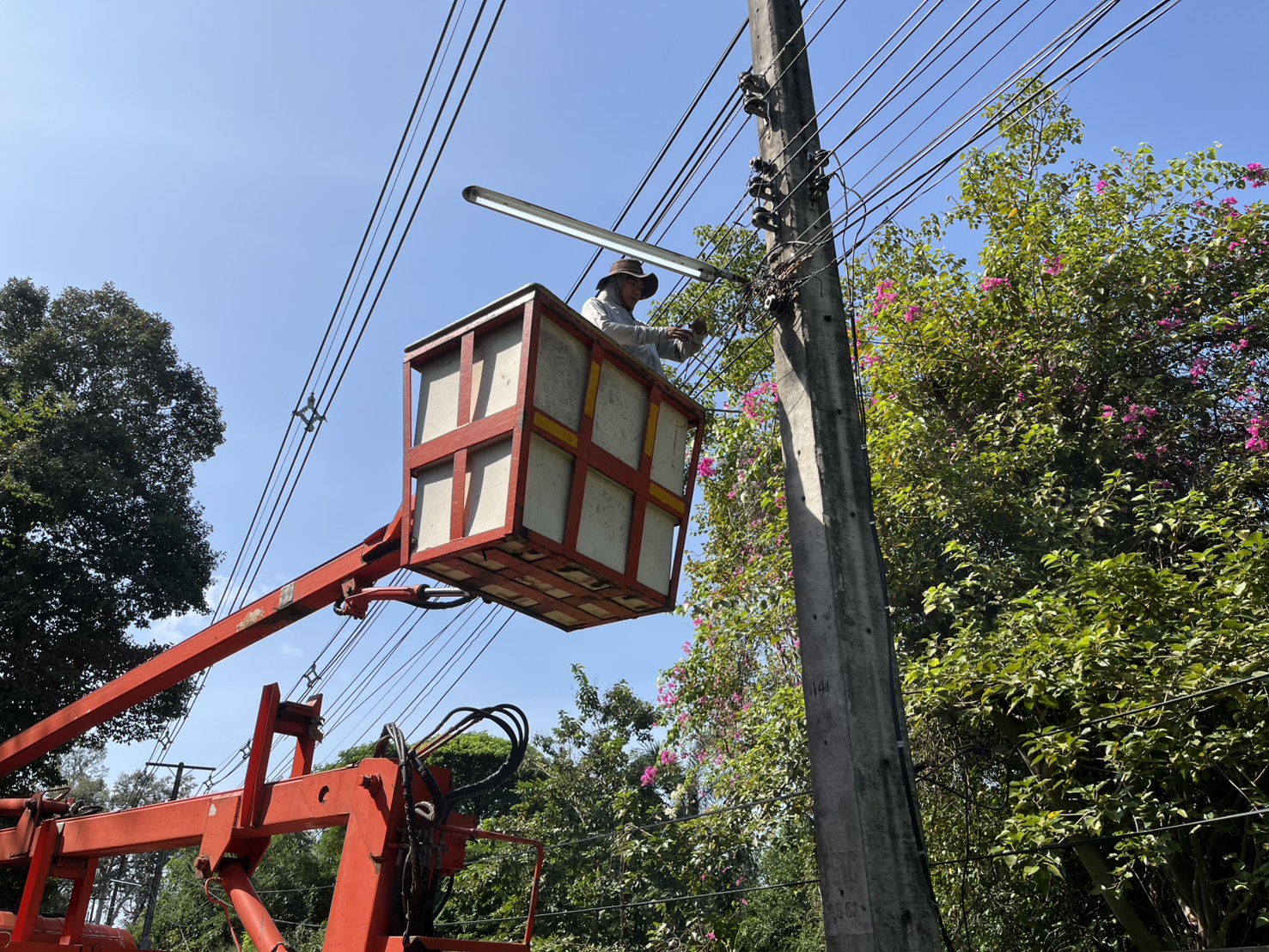 เทศบาลตำบลตาดทอง ลงพื้นที่ซ่อมแซมไฟฟ้าส่องสว่างสาธารณะในพื้นที่ตำบลตาดทอง อำเภอเมืองยโสธร จังหวัดยโสธร