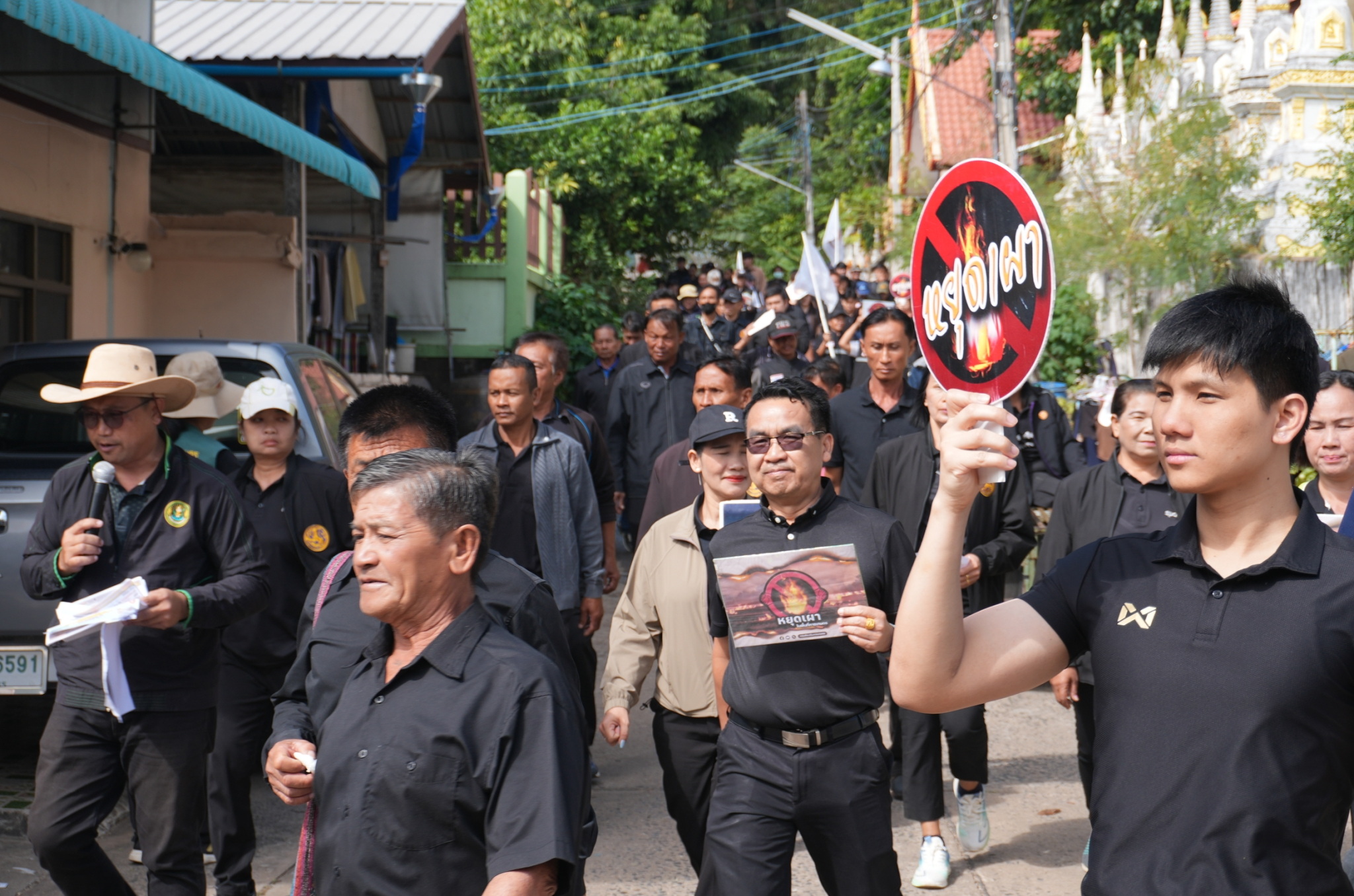 เทศบาลตำบลตาดทอง ร่วมประชุมกำนัน-ผู้ใหญ่บ้านสัญจร ตำบลตาดทอง และร่วมกิจกรรมเดินรณรงค์กิจกรรมเคาะประตูบ้าน "งดเผา ลดฝุ่น เพื่อคุณ เพื่อเรา" ครบทุกหมู่บ้าน ปี พ.ศ. 2568-2569
