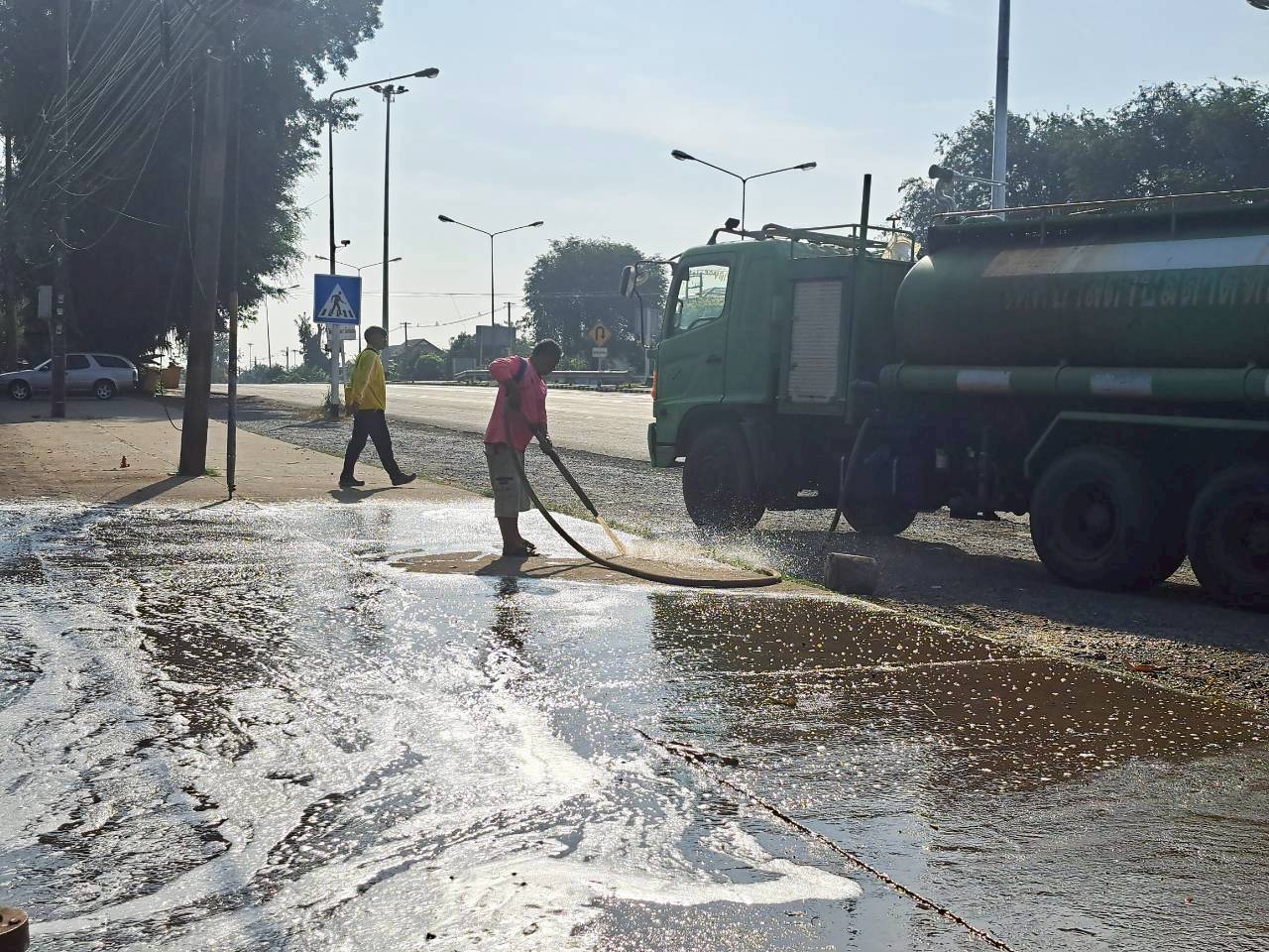 กองสาธารณสุขและสิ่งแวดล้อม ร่วมกับ งานป้องกันฯ สำนักปลัด เทศบาลตำบลตาดทอง ทำความสะอาดบริเวณคลองน้ำ และล้างตลาดสดเทศบาลตำบลตาดทอง ตำบลตาดทอง อำเภอเมืองยโสธร จังหวัดยโสธร