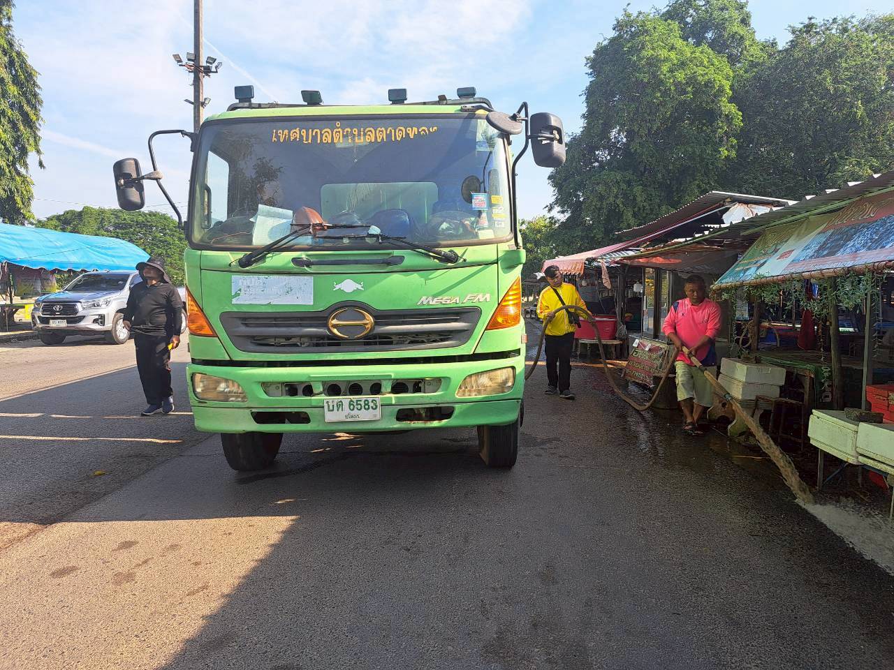 วันอังคารที่ 9 ธันวาคม พ.ศ. 2568 และวันศุกร์ที่ 12 ธันวาคม พ.ศ. 2568 เวลา 08.30 น. นางสาวภัคสุนันท์ คำลือ นายกเทศมนตรีตำบลตาดทอง มอบหมายให้ กองสาธารณสุขฯ ร่วมกับ งานป้องกันฯ สำนักปลัด เทศบาลตำบลตาดทอง ลงพื้นที่ทำความสะอาด "ล้างตลาดสดเทศบาลตำบลตาดทอง" โดยทำความสะอาดล้างบริเวณคลองน้ำ และล้างตลาดสดเทศบาลตำบลตาดทอง ตามหลักสุขาภิบาล พร้อมปรับปรุงสภาพแวดล้อมภายในและภายนอกให้สะอาด ปลอดภัย ป้องกันการแพร่ระบาดของโรค สร้างความมั่นใจให้กับพ่อค้า แม่ค้า และประชาชนที่มาใช้บริการ ตลาดสดเทศบาลตำบลตาดทอง