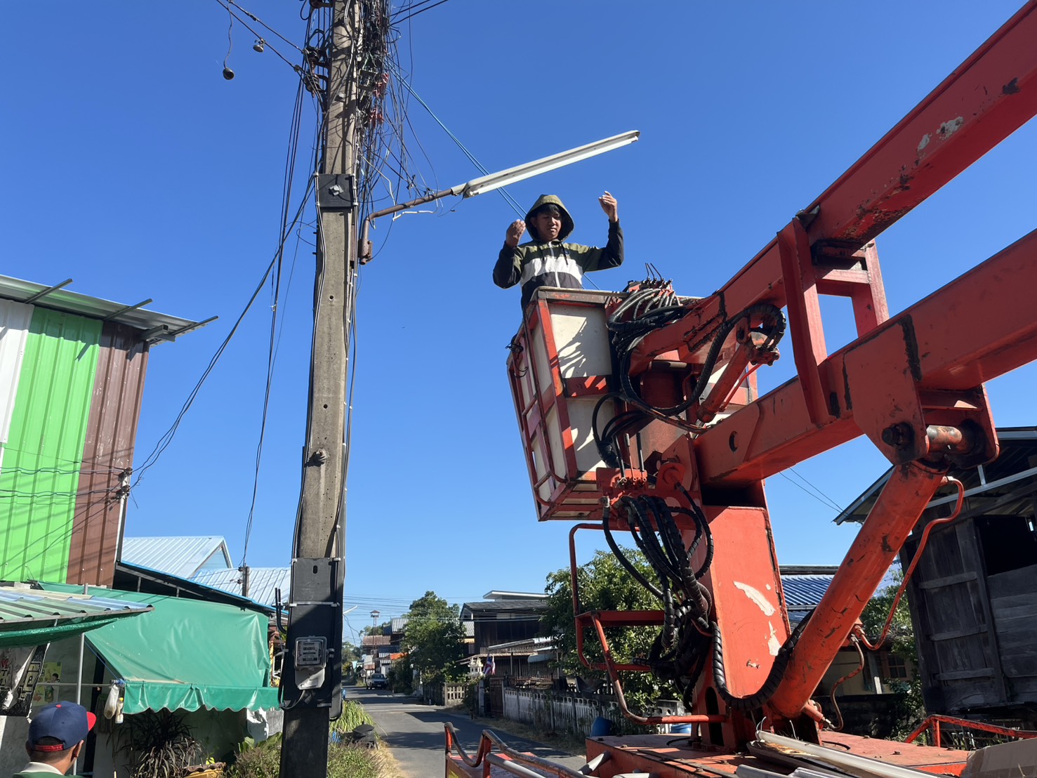 เทศบาลตำบลตาดทอง ลงพื้นที่ซ่อมแซมไฟฟ้าส่องสว่างสาธารณะในพื้นที่ตำบลตาดทอง อำเภอเมืองยโสธร จังหวัดยโสธร