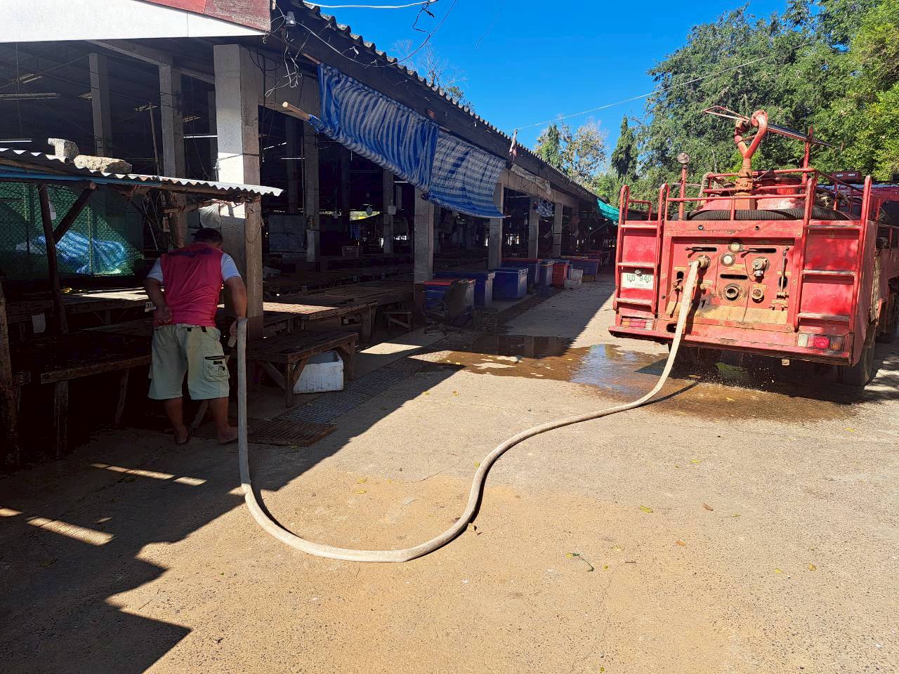 วันศุกร์ที่ 19 ธันวาคม พ.ศ. 2568 นางสาวภัคสุนันท์ คำลือ นายกเทศมนตรีตำบลตาดทอง มอบหมายให้ กองสาธารณสุขฯ ร่วมกับ งานป้องกันฯ สำนักปลัด เทศบาลตำบลตาดทอง ลงพื้นที่ทำความสะอาด "ล้างตลาดสดเทศบาลตำบลตาดทอง" โดยทำความสะอาดล้างบริเวณคลองน้ำ และล้างตลาดสดเทศบาลตำบลตาดทอง ตามหลักสุขาภิบาล พร้อมปรับปรุงสภาพแวดล้อมภายในและภายนอกให้สะอาด ปลอดภัย ป้องกันการแพร่ระบาดของโรค สร้างความมั่นใจให้กับพ่อค้า แม่ค้า และประชาชนที่มาใช้บริการ ตลาดสดเทศบาลตำบลตาดทอง