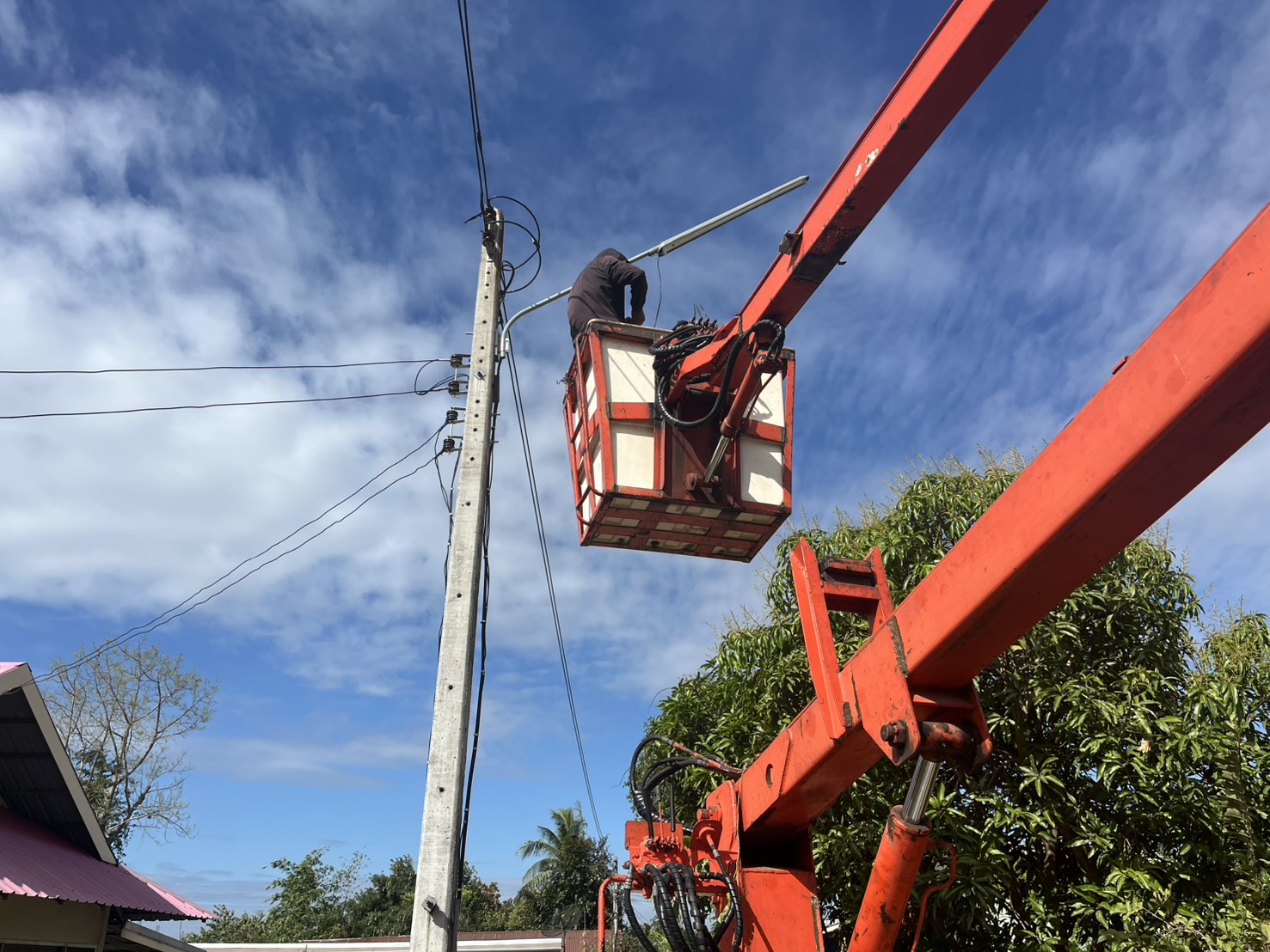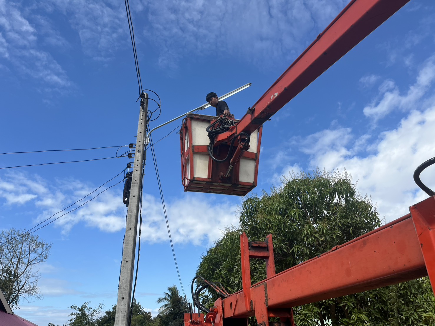 เทศบาลตำบลตาดทอง ลงพื้นที่ซ่อมแซมไฟฟ้าส่องสว่างสาธารณะในพื้นที่ตำบลตาดทอง อำเภอเมืองยโสธร จังหวัดยโสธร