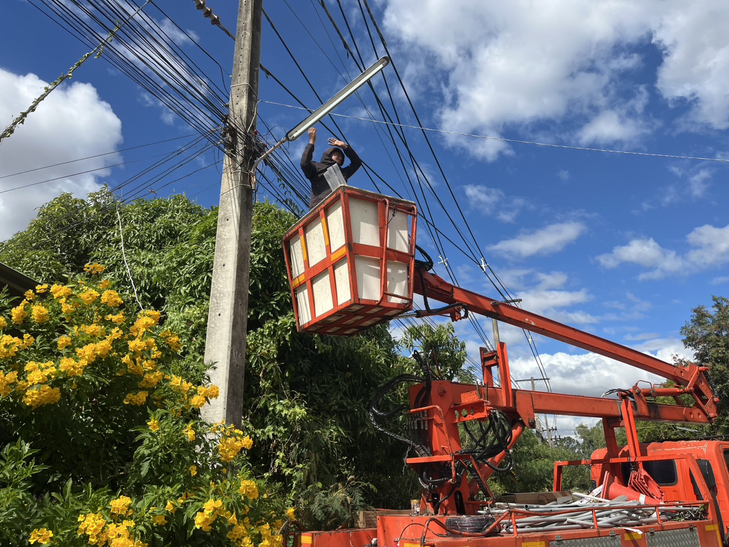 เทศบาลตำบลตาดทอง ลงพื้นที่ซ่อมแซมไฟฟ้าส่องสว่างสาธารณะในพื้นที่ตำบลตาดทอง อำเภอเมืองยโสธร จังหวัดยโสธร