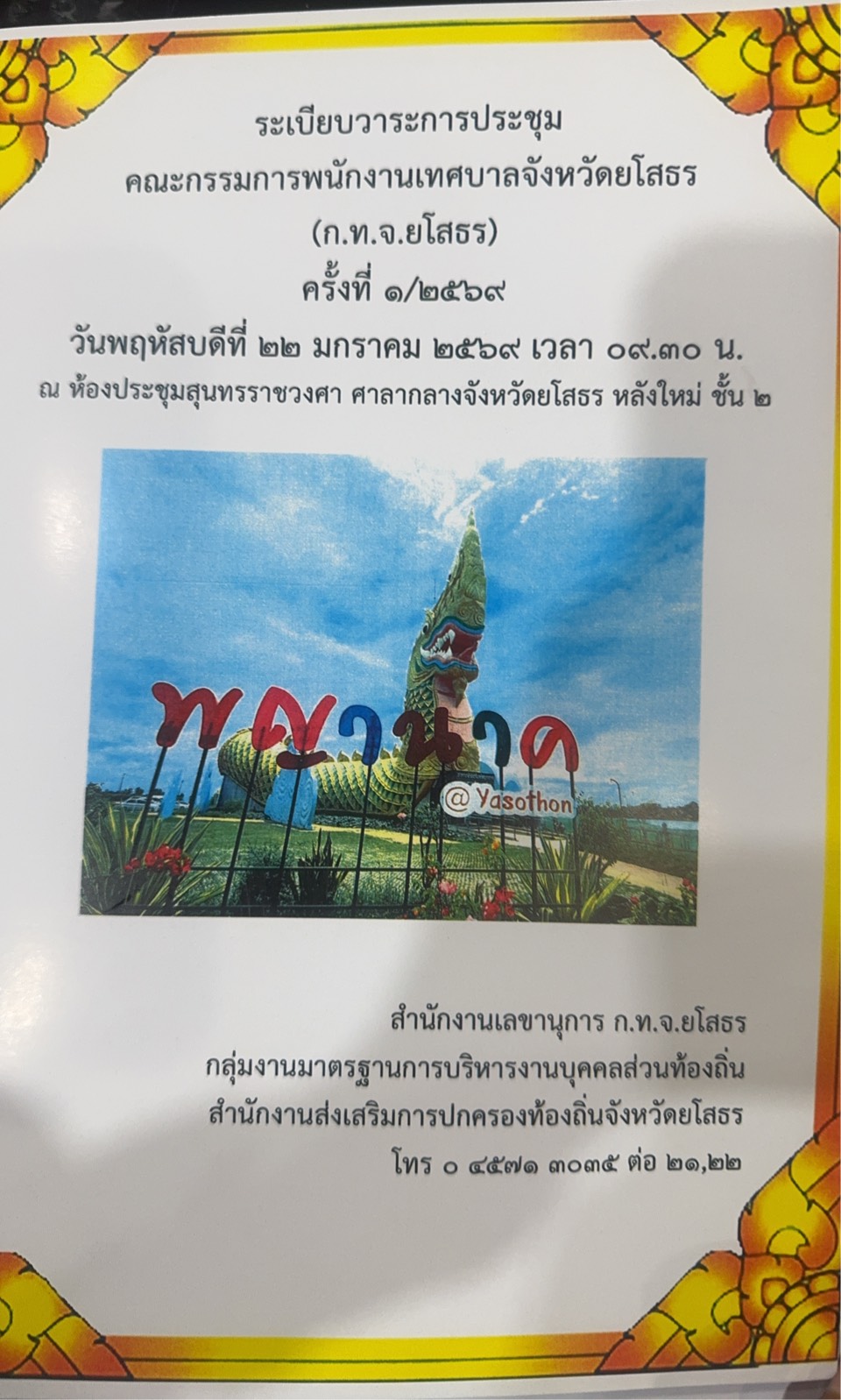 เทศบาลตำบลตาดทอง เข้าร่วมประชุมคณะกรรมการพนักงานเทศบาลจังหวัดยโสธร ครั้งที่ 1/2569