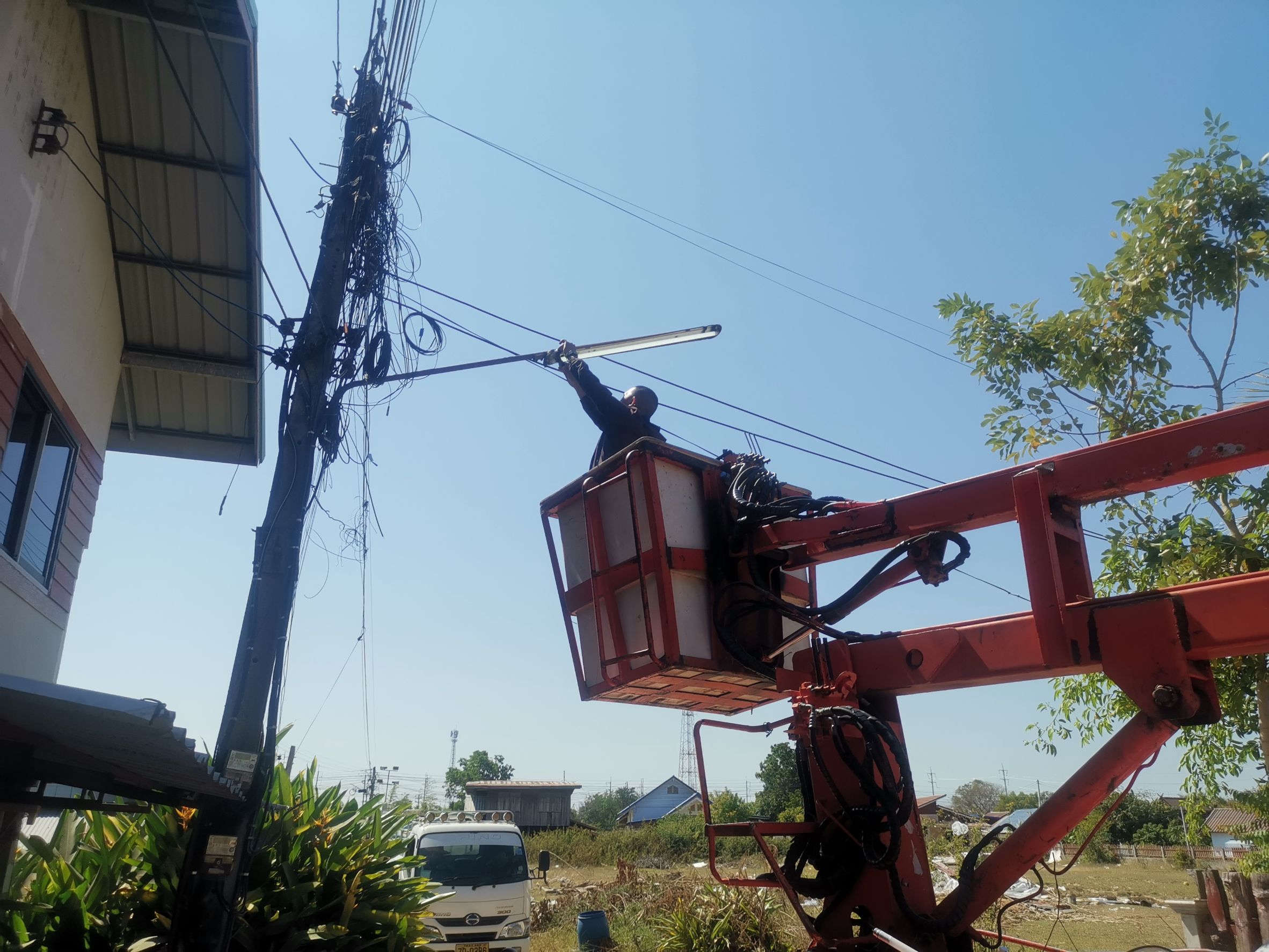 เทศบาลตำบลตาดทอง ลงพื้นที่ซ่อมแซมไฟฟ้าส่องสว่าง ไฟฟ้าสาธารณะประโยชน์ และตัดต้นไม้ ตัดกิ่งไม้ ในพื้นที่ตำบลตาดทอง อำเภอเมืองยโสธร จังหวัดยโสธร