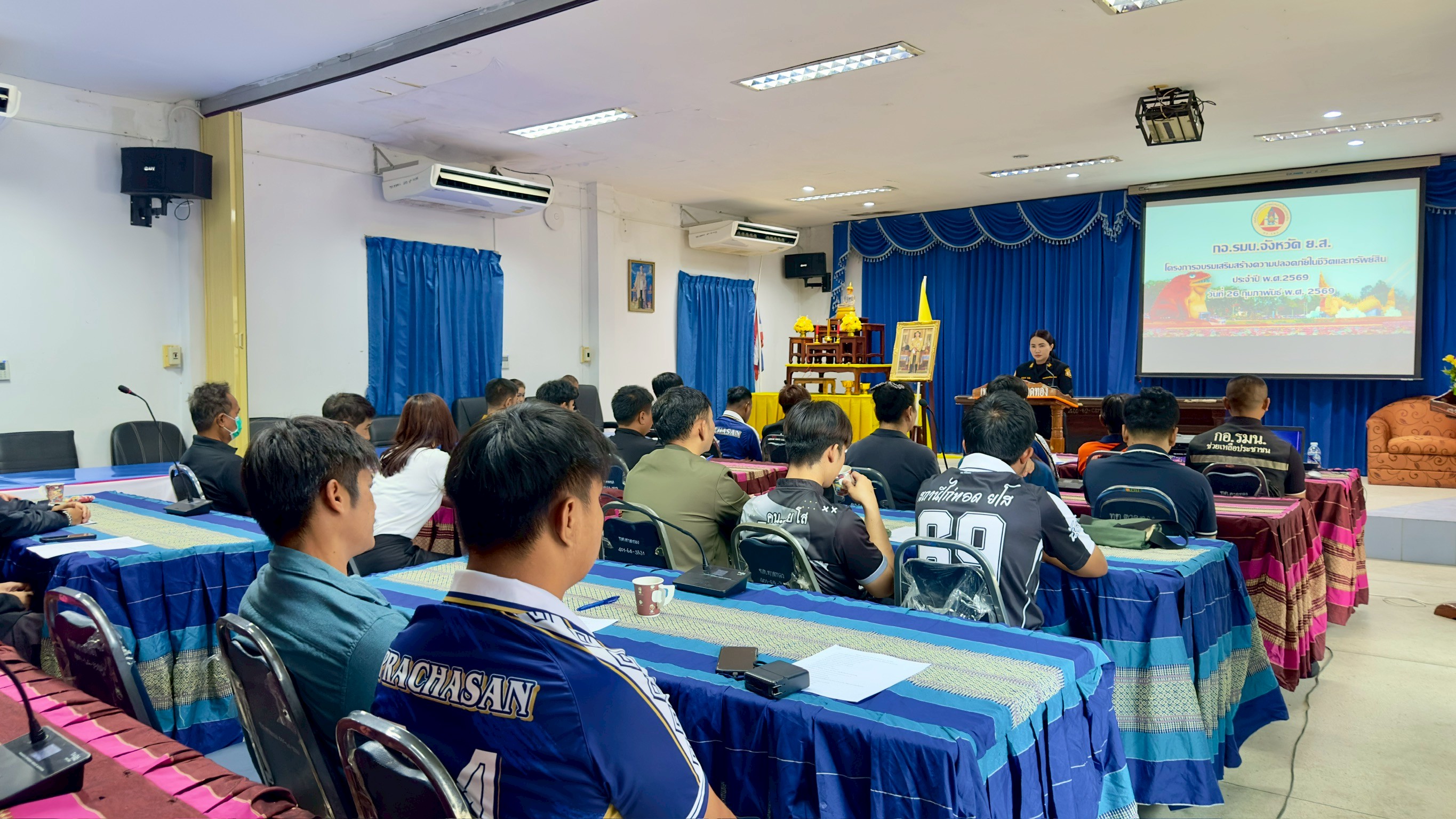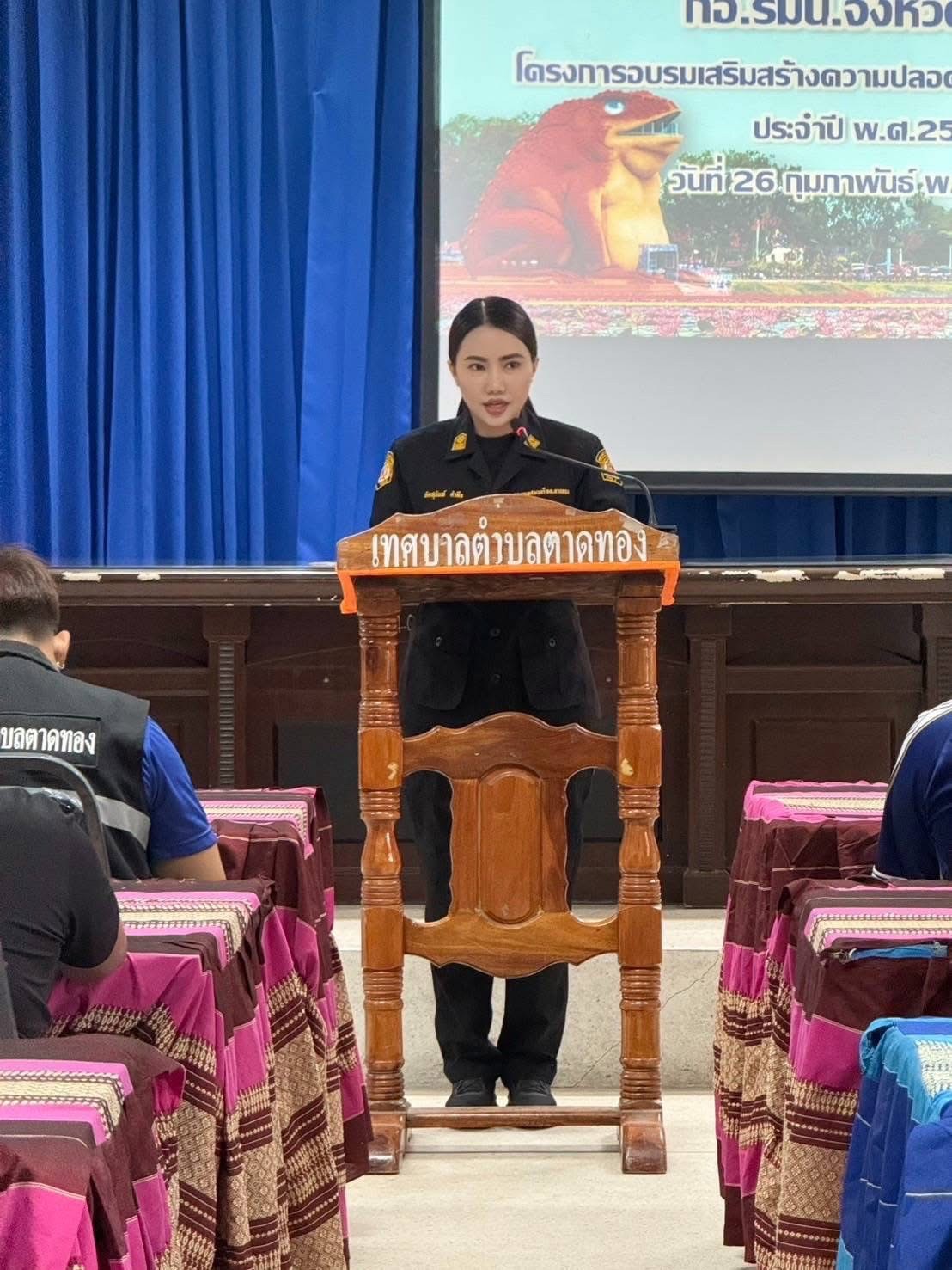 วันพฤหัสบดีที่ 26 กุมภาพันธ์ พ.ศ. 2569 เวลา 09.19 น. นางสาวภัคสุนันท์ คำลือ นายกเทศมนตรีตำบลตาดทอง เป็นประธานพิธีเปิด โครงการการเสริมสร้างความปลอดภัยในชีวิตและทรัพย์สิน ประจำปี พ.ศ. 2569 โดยมี ร้อยโทหัสตะชัย เนตรวงษ์ ผู้แทน กองอำนวยการรักษาความมั่นคงภายในจังหวัดยโสธร เป็นผู้กล่าวต้อนรับ จ่าสิบเอกวิลาศ ยินงาม นักป้องกันฯ กล่าวรายงาน พร้อมด้วย ว่าที่ร้อยตรีพิชิต กันยาวรรณ ปลัดเทศบาลฯ หัวหน้าส่วนราชการ พนักงานเทศบาลตำบลตาดทอง และเจ้าหน้าที่กองอำนวยการรักษาความมั่นคงภายในจังหวัดยโสธร เข้าร่วมพิธีเปิดและเข้าร่วมกิจกรรมโครงการฯ เพื่อสร้างภาคีเครือข่ายภาคประชาชนในระดับตำบล ในการร่วมมือกันคิด วิเคราะห์ และแก้ไขปัญหาให้สอดคล้องกับแผนแม่บท ภายใต้ยุทธศาสตร์ชาติ (พ.ศ. 2561 – 2580) ที่จะนำไปสู่การบรรลุเป้าหมายการพัฒนาที่ยั่งยืนในการป้องกันและลดความสูญเสียทั้งชีวิตและทรัพย์สินอย่างเป็นรูปธรรม โดยมีผู้เข้าร่วมโครงการทั้งสิ้น จำนวน 31 คน