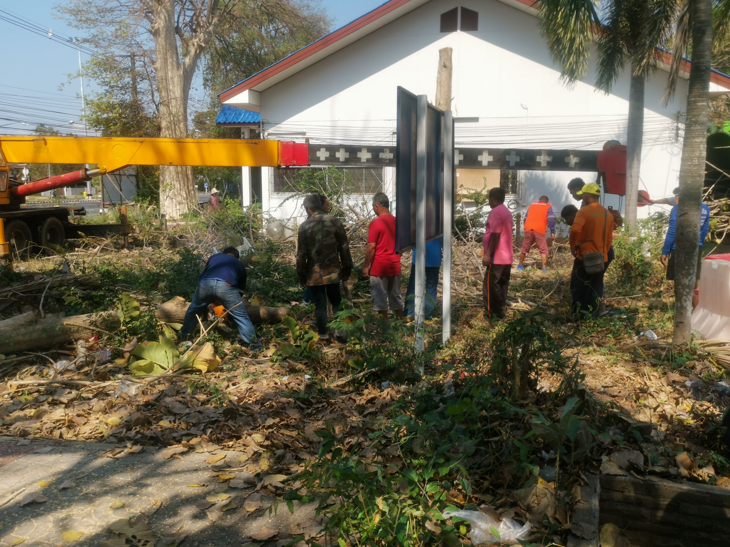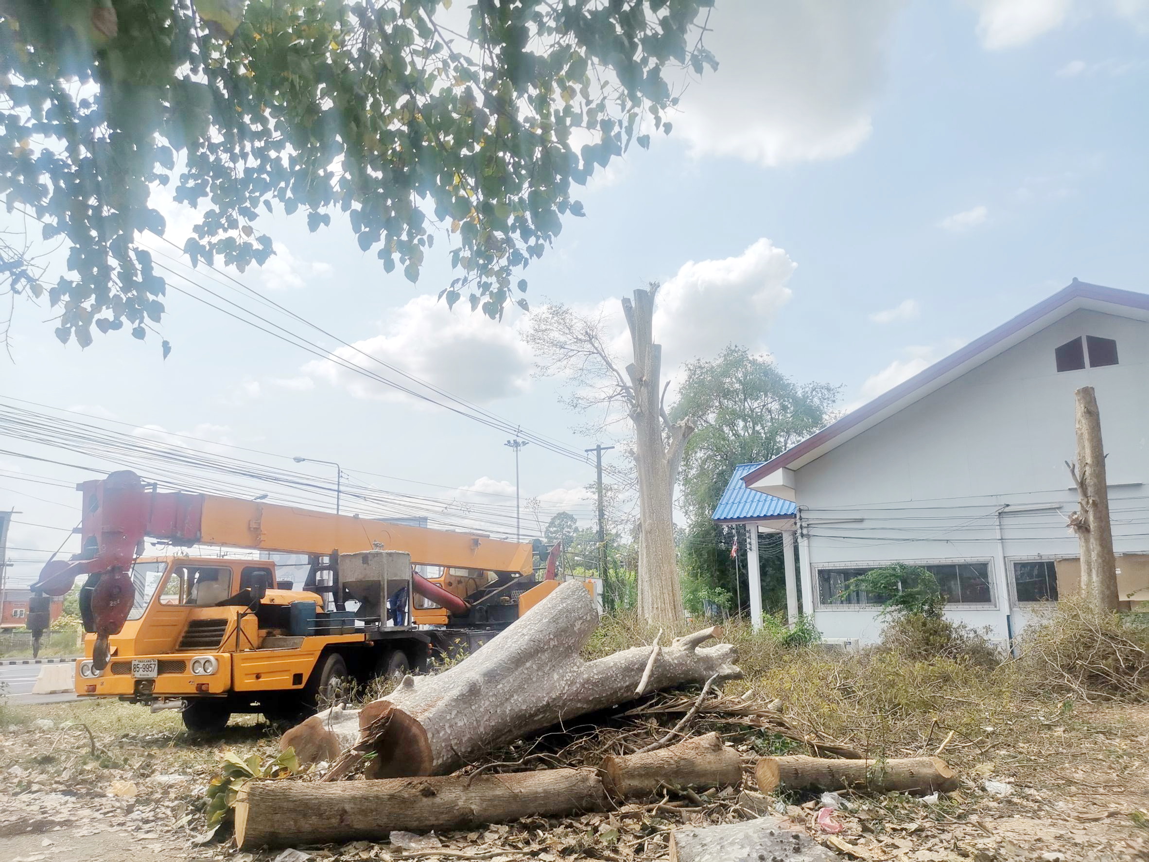 เทศบาลตำบลตาดทอง ลงพื้นที่ดำเนินการ ตัดต้นไม้ ตัดกิ่งไม้ ในพื้นที่ตำบลตาดทอง อำเภอเมืองยโสธร จังหวัดยโสธร