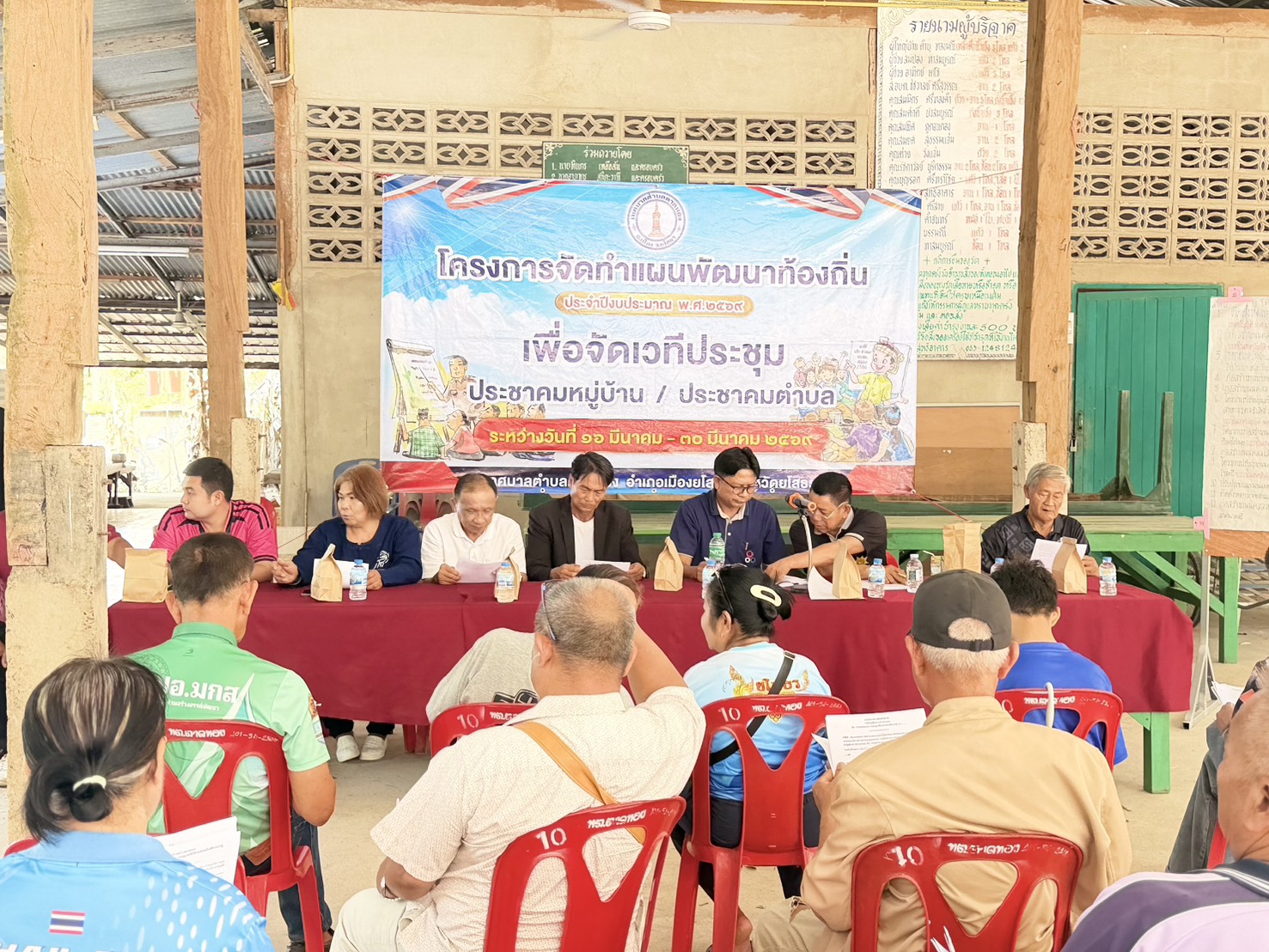 วันศุกร์ที่ 27 มีนาคม พ.ศ. 2569 เวลา 09.30 น. นางสาวภัคสุนันท์ คำลือ นายกเทศมนตรีตำบลตาดทอง มอบหมายให้ คณะผู้บริหารเทศบาลฯ ร่วมโครงการจัดทำแผนพัฒนาท้องถิ่น ประจำปีงบประมาณ พ.ศ.2569 โดยมี นายคำบุ ทองมณี กำนันตำบลตาดทอง หมู่ที่ 10 เป็นประธานเปิดโครงการฯ โดยมี สมาชิกสภาเทศบาลฯ นายประเสริฐ ชูรัตน์ ผู้อำนวยการกองช่าง ผู้นำชุมชน ประชาชนในพื้นที่และพนักงานเทศบาลตำบลตาดทอง ลงพื้นที่เพื่อทบทวนแผนพัฒนาท้องถิ่น (พ.ศ.2566 – 2570) ปรับปรุงเปลี่ยนแปลง เพิ่มเติมแผน และมีการประชาคมสอบถามปัญหาความเดือนร้อน ความต้องการของประชาชนในพื้นที่ตำบลตาดทอง