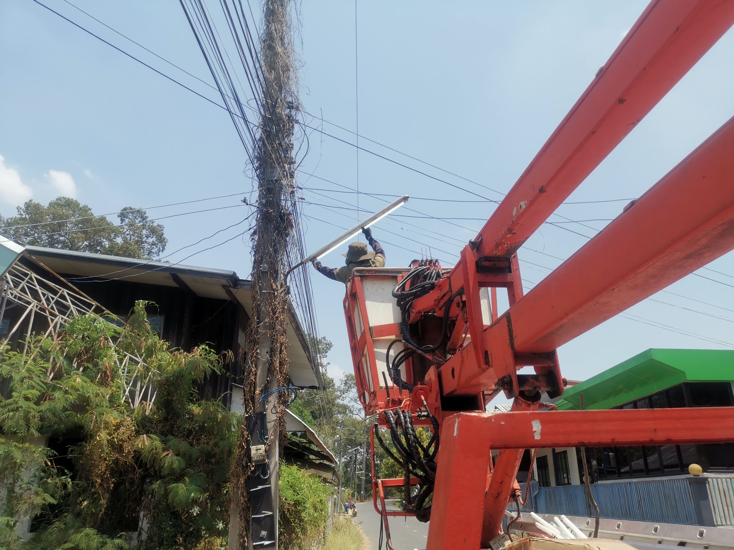 เทศบาลตำบลตาดทอง ลงพื้นที่ซ่อมแซมไฟฟ้าส่องสว่าง ไฟฟ้าสาธารณะประโยชน์ ในพื้นที่ตำบลตาดทอง อำเภอเมืองยโสธร จังหวัดยโสธร