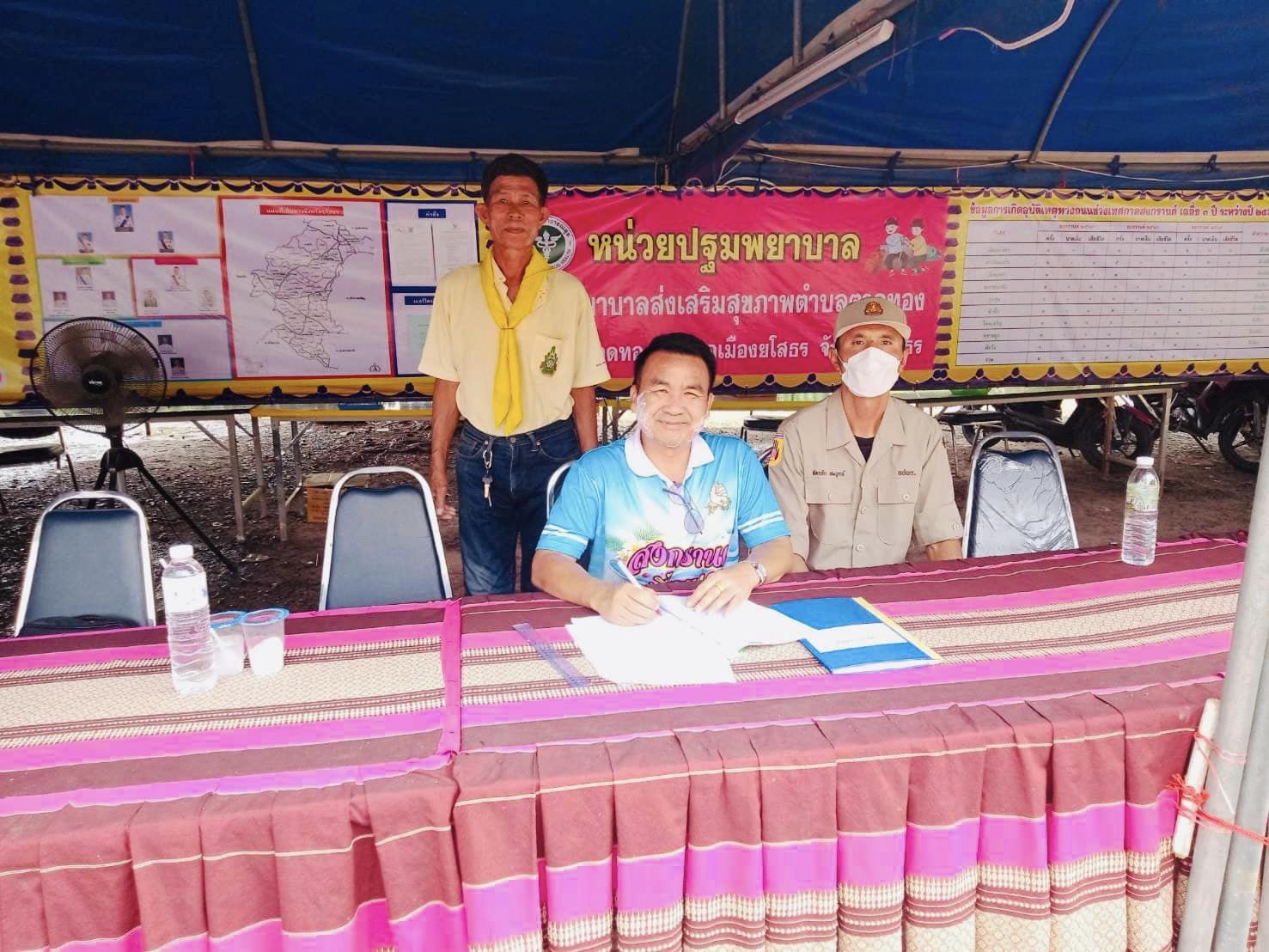ณ ศูนย์ปฎิบัติการป้องกันและบรรเทาสาธารณภัย บริเวณหน้าเทศบาลตำบลตาดทอง ตำบลตาดทอง อำเภอเมืองยโสธร จังหวัดยโสธร