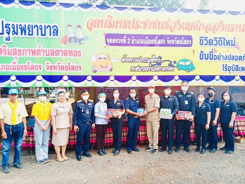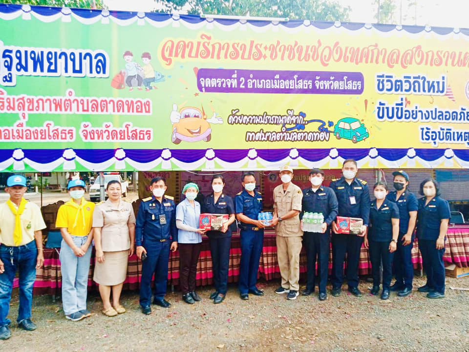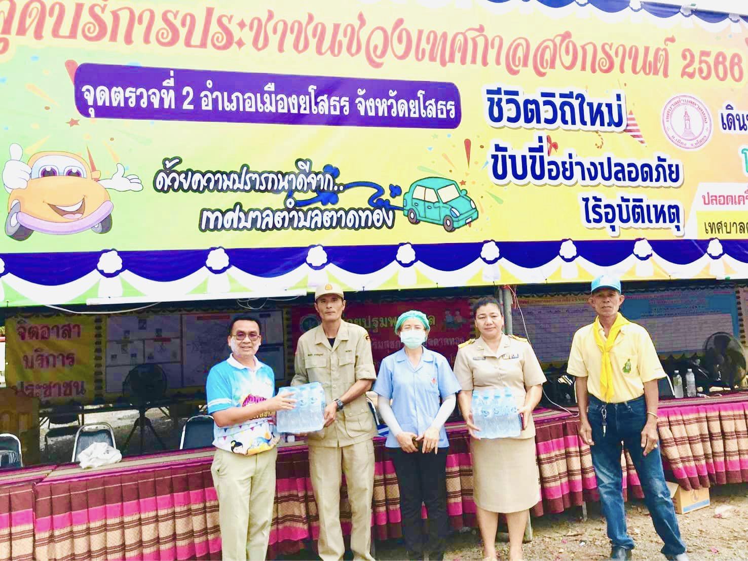 เวลา 15.30 น. สรรพสามิตจังหวัดยโสธร ตรวจเยี่ยม พร้อมมอบ น้ำดื่ม และน้ำจับเลี้ยง ให้เจ้าหน้าที่ศูนย์ปฎิบัติงานประจำจุดตรวจ/บริการประชาชน