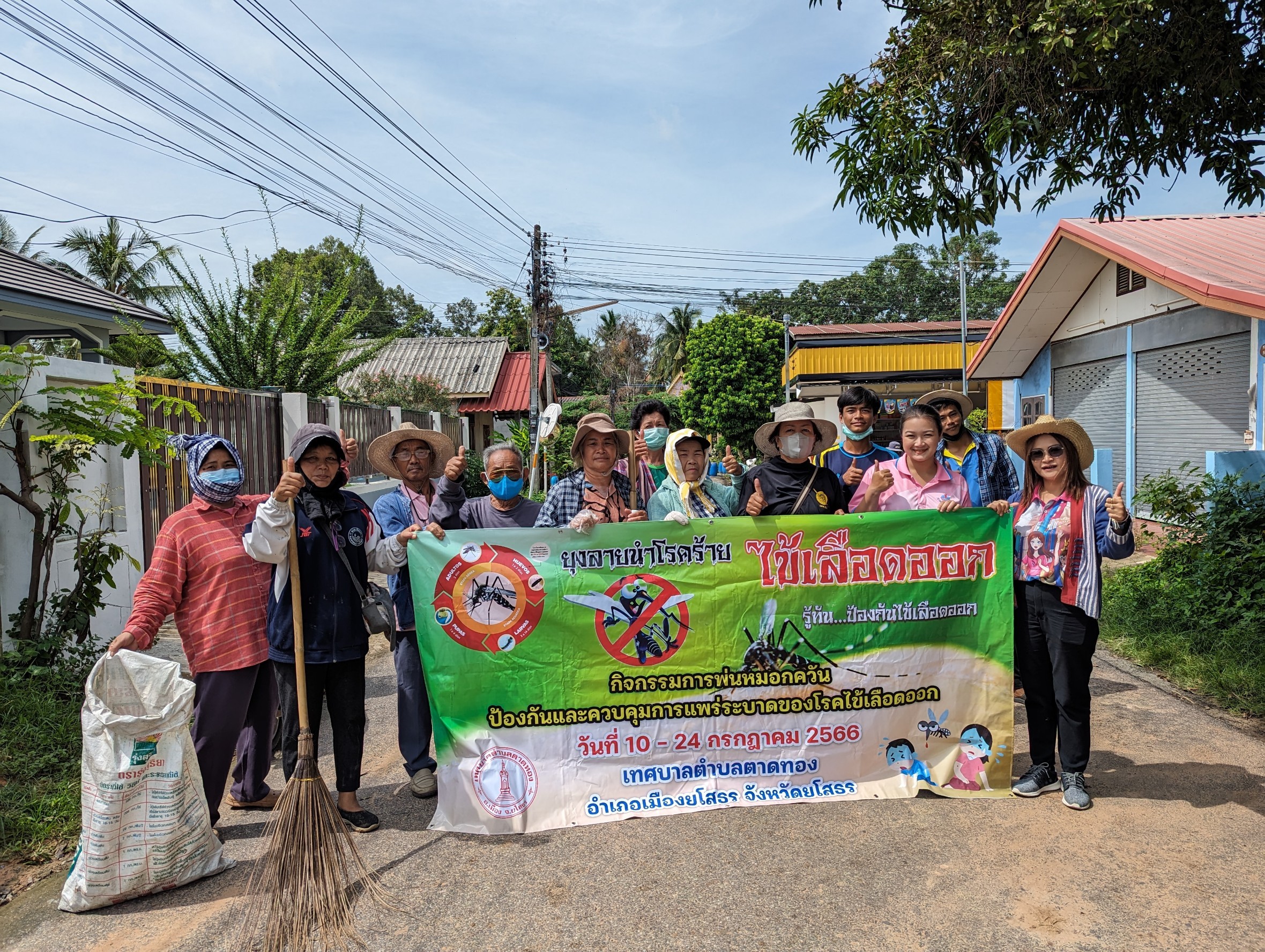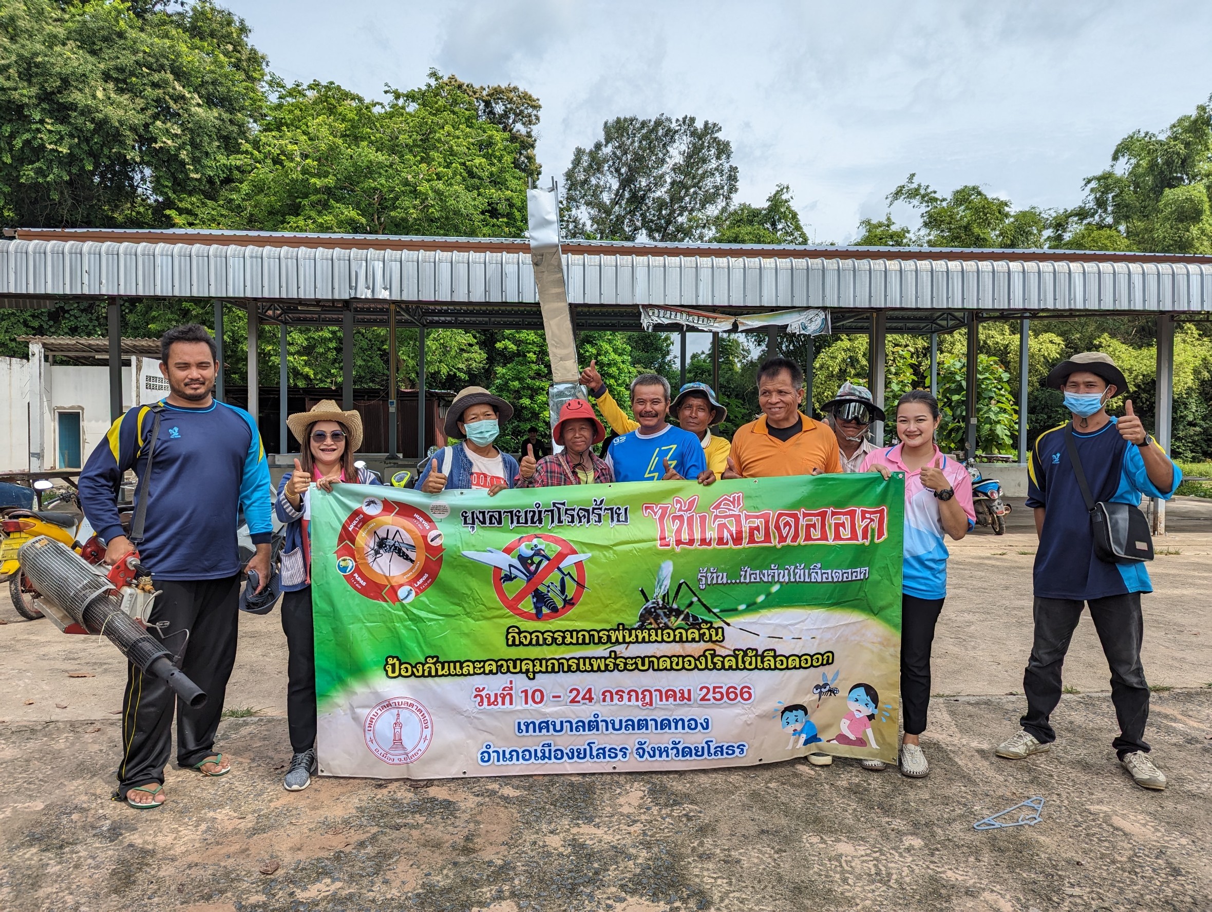 วันที่ 19 กรกฏาคม 2566 เวลา 10.00 น. กองสาธารณสุข เทศบาลตำบลตาดทอง ร่วมกับอาสาสมัครสาธารณสุขประจำหมู่บ้านและเจ้าหน้าที่โรงพยาบาลส่งเสริมสุขภาพตำบลตาดทอง พร้อมด้วย สมาชิกสภาเทศบาลฯ ผู้นำชุมชน และพนักงานเทศบาลตำบลตาดทอง ลงพื้นที่ทำการพ่นหมอกควันเพื่อป้องกันและประชาสัมพันธ์รณรงค์ให้มีการควบคุมการแพร่ระบาดของโรคไข้เลือดออกที่บริเวณบ้านสะเดา หมู่ที่ 5 หมู่ที่ 6 และหมู่ที่ 13