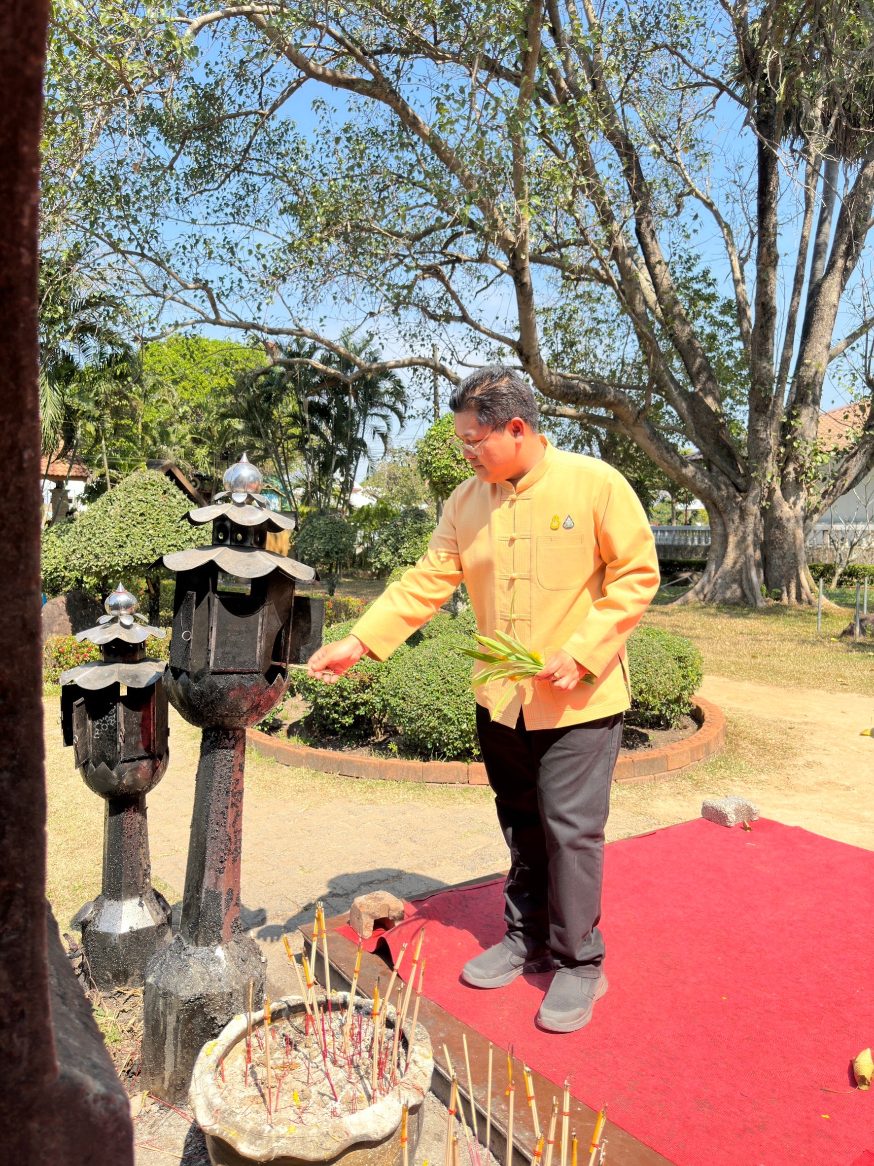 วันอังคารที่ 30 มกราคม 2567 เวลา 12.30 น. นายอดุลย์ เวชกามา รองนายกเทศมนตรีตำบลตาดทอง พร้อมด้วย นางสาวศวิตฉันท์ จันทา นักประชาสัมพันธ์ นายพิชัย เวชกามา พนักงานขับรถยนต์ และพนักงานเทศบาลตำบลตาดทอง นางสาวคนึงนิต เวชกามา ผู้ใหญ่บ้านตาดทอง หมู่ที่ 9 นางอรัญญา เวชกามา ผู้ใหญ่บ้านตาดทอง หมู่ที่ 11 นางณัฐนาถ ขันสิงห์ ผู้ช่วยผู้ใหญ่บ้านตาดทอง หมู่ที่ 9 นายสนิท โพธาราม ผู้ช่วยผู้ใหญ่บ้านตาดทอง หมู่ที่ 9 ร่วมให้การต้อนรับ นายรองรัตน์ จงอุตส่าห์ นายอำเภอเมืองยโสธร เนื่องในโอกาสที่เดินทางมาเข้าสักการะพระธาตุก่องข้าวน้อย สิ่งศักดิ์สิทธิ์คู่บ้านคู่เมืองประจำจังหวัดยโสธร เพื่อความเป็นสิริมงคลในการมารับตำแหน่งที่จังหวัดยโสธร