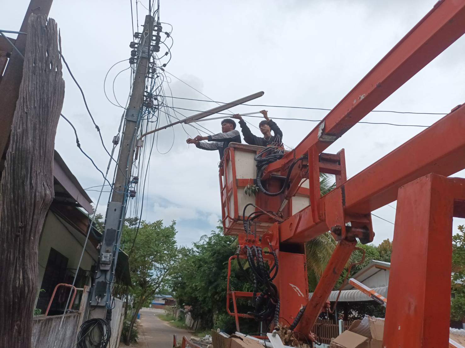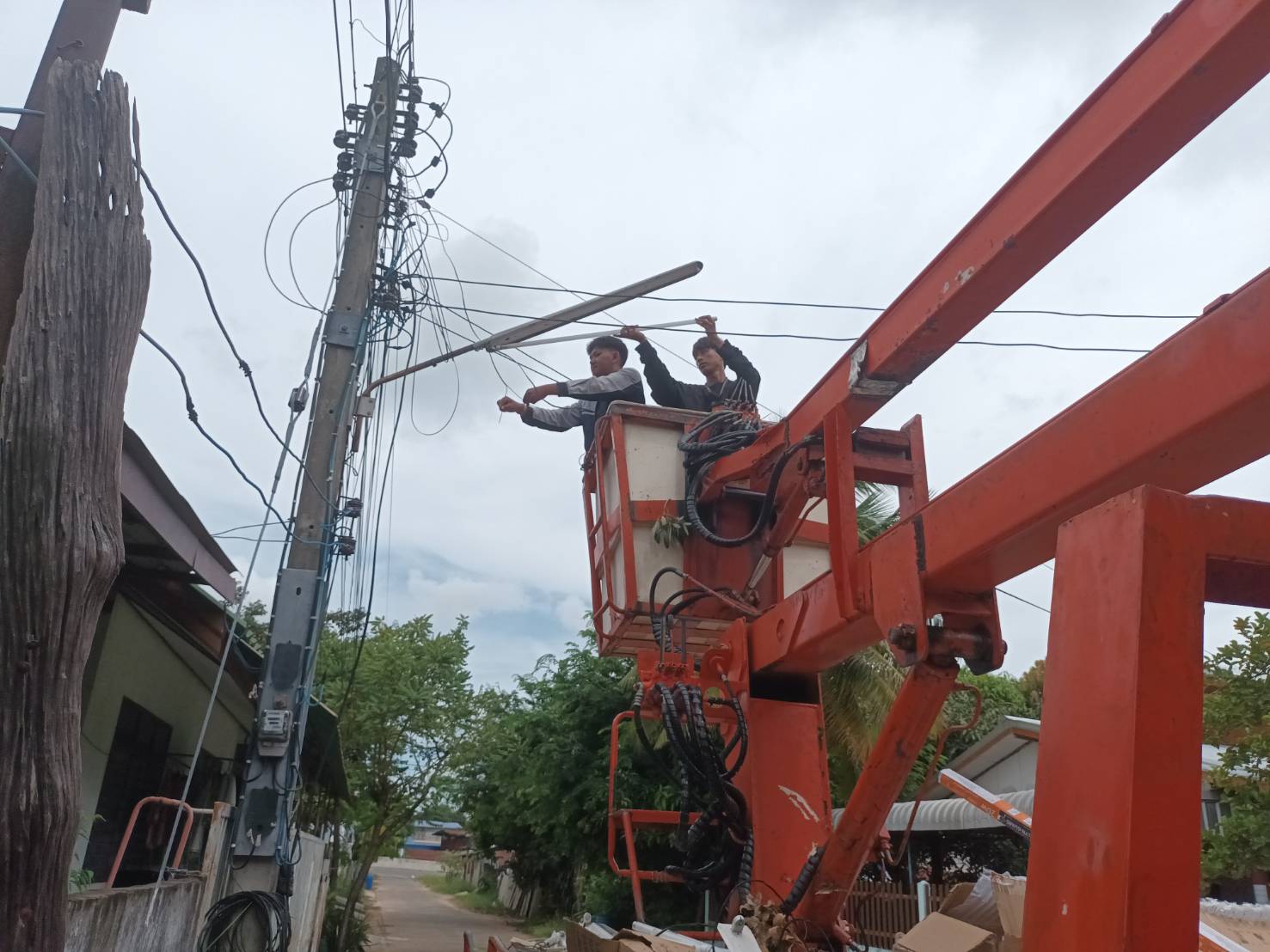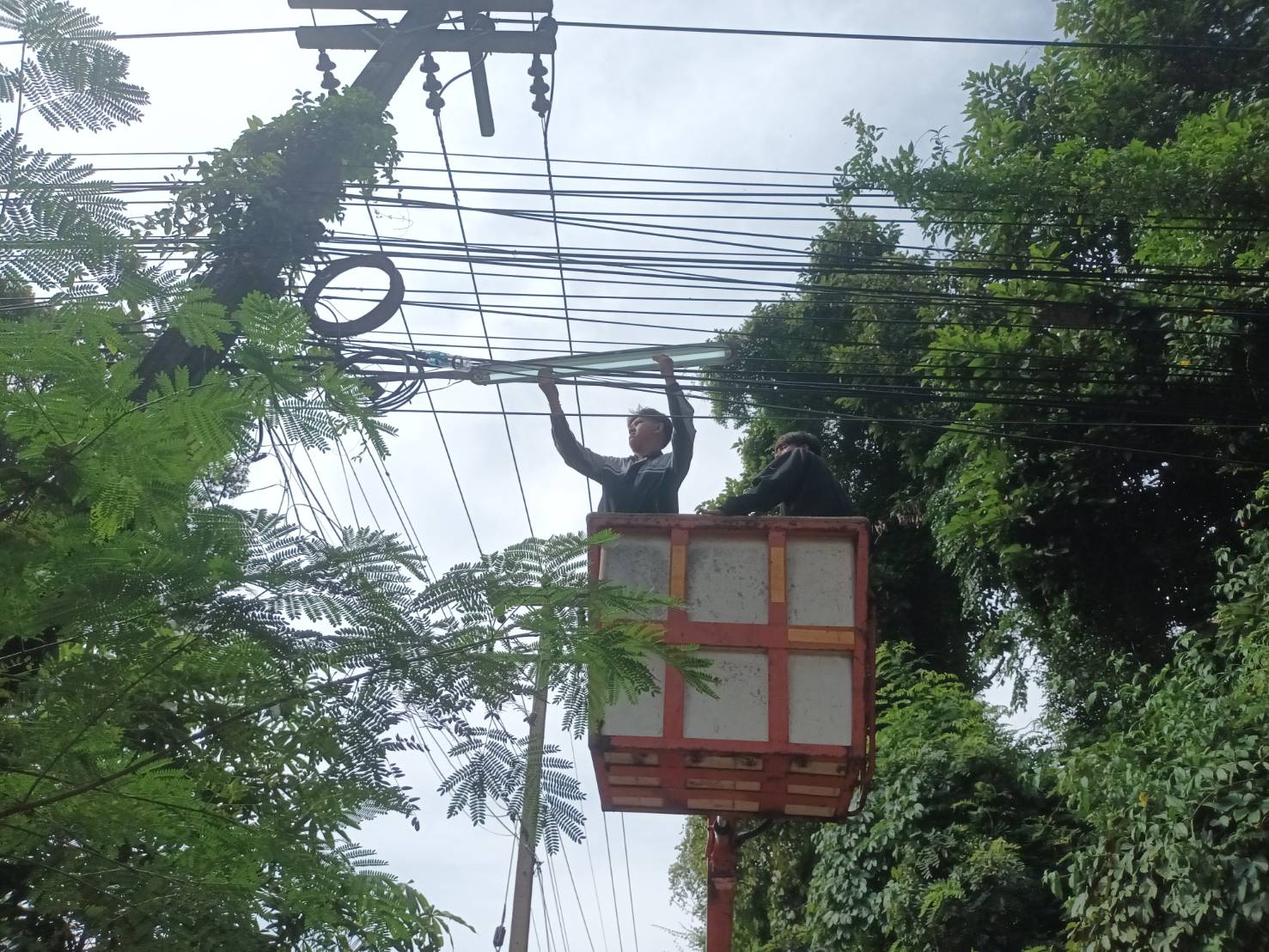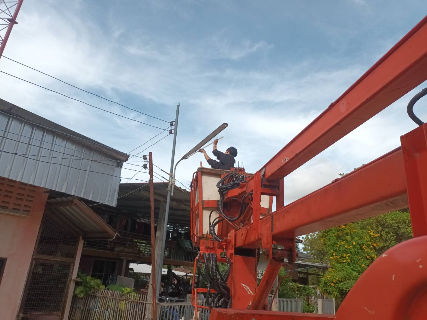 เทศบาลตำบลตาดทอง ลงพื้นที่ซ่อมแซม ไฟฟ้าสาธารณะจุดต่างๆ ในพื้นที่ตำบลตาดทอง