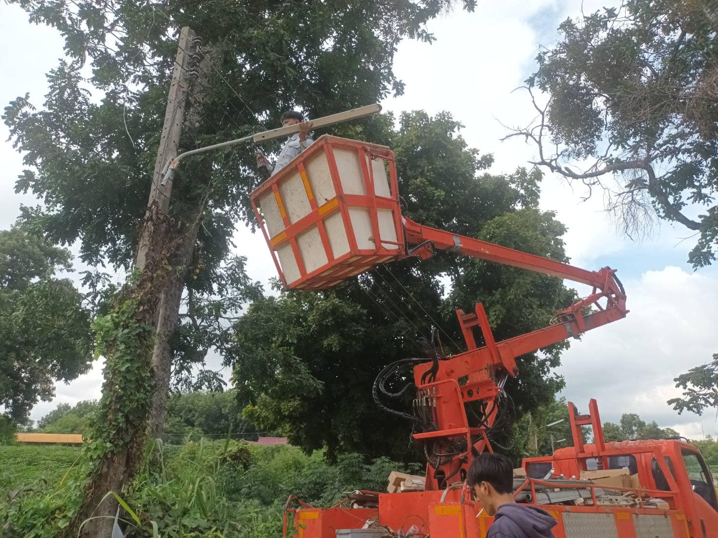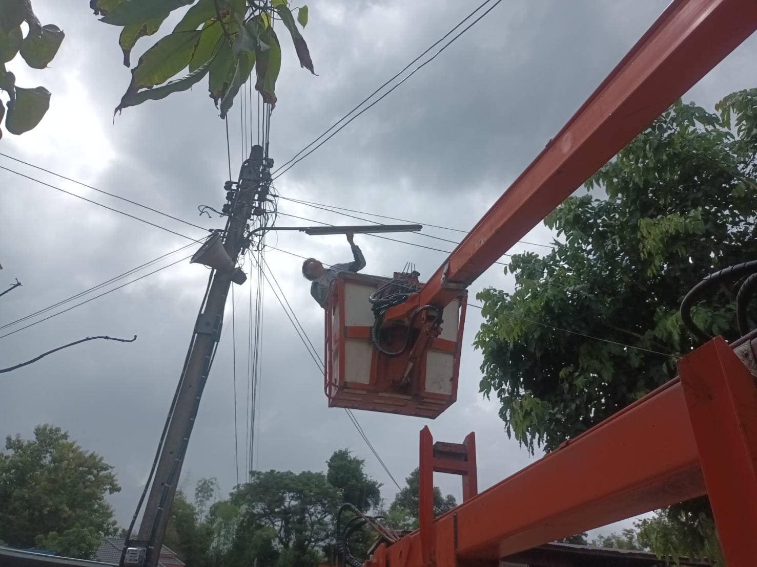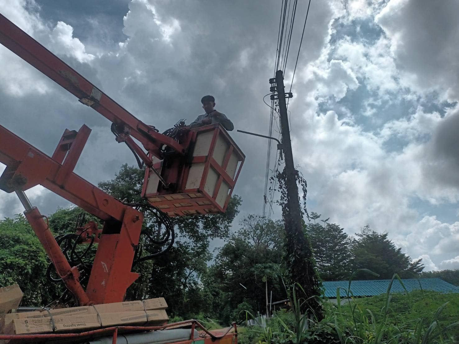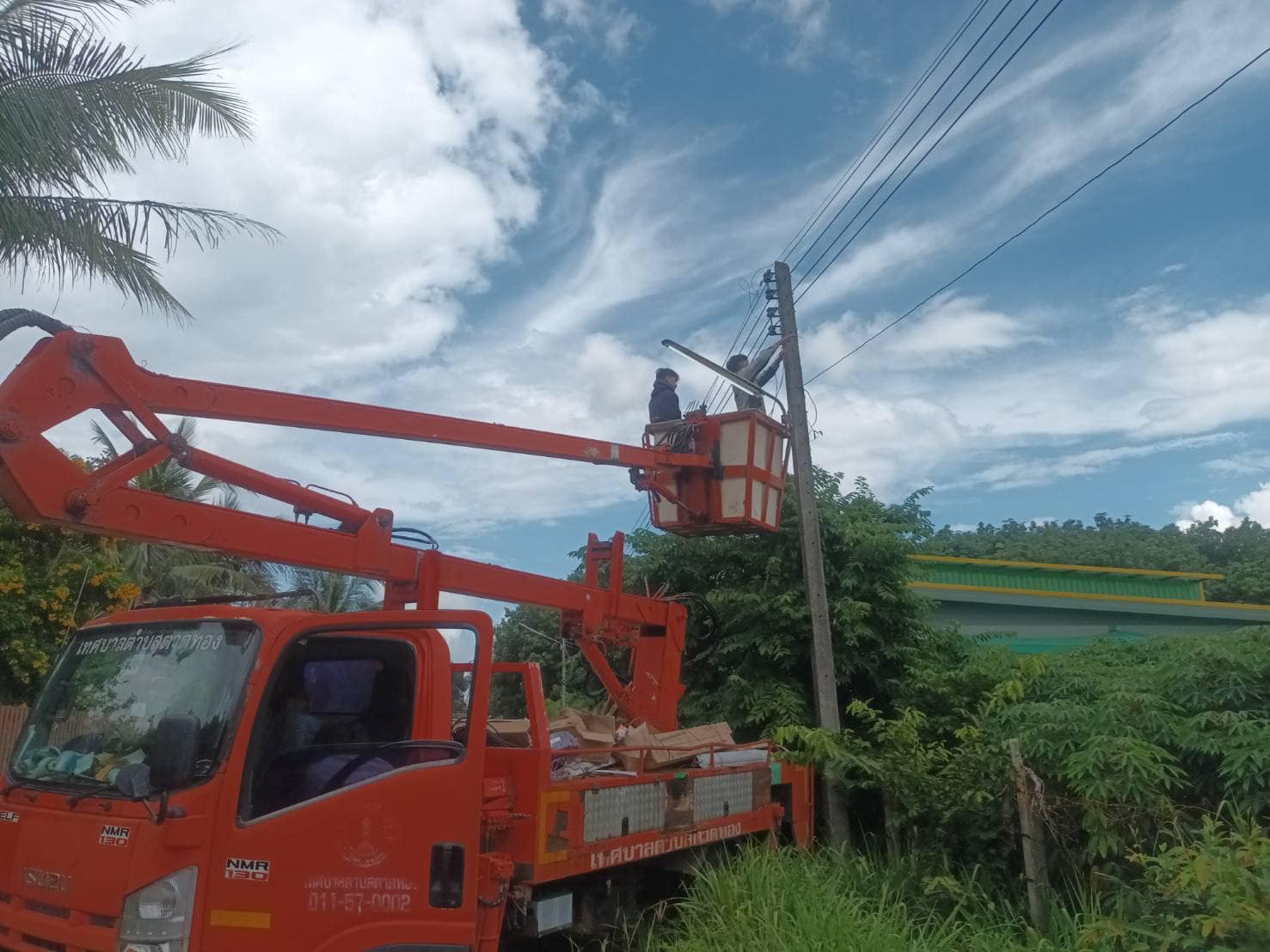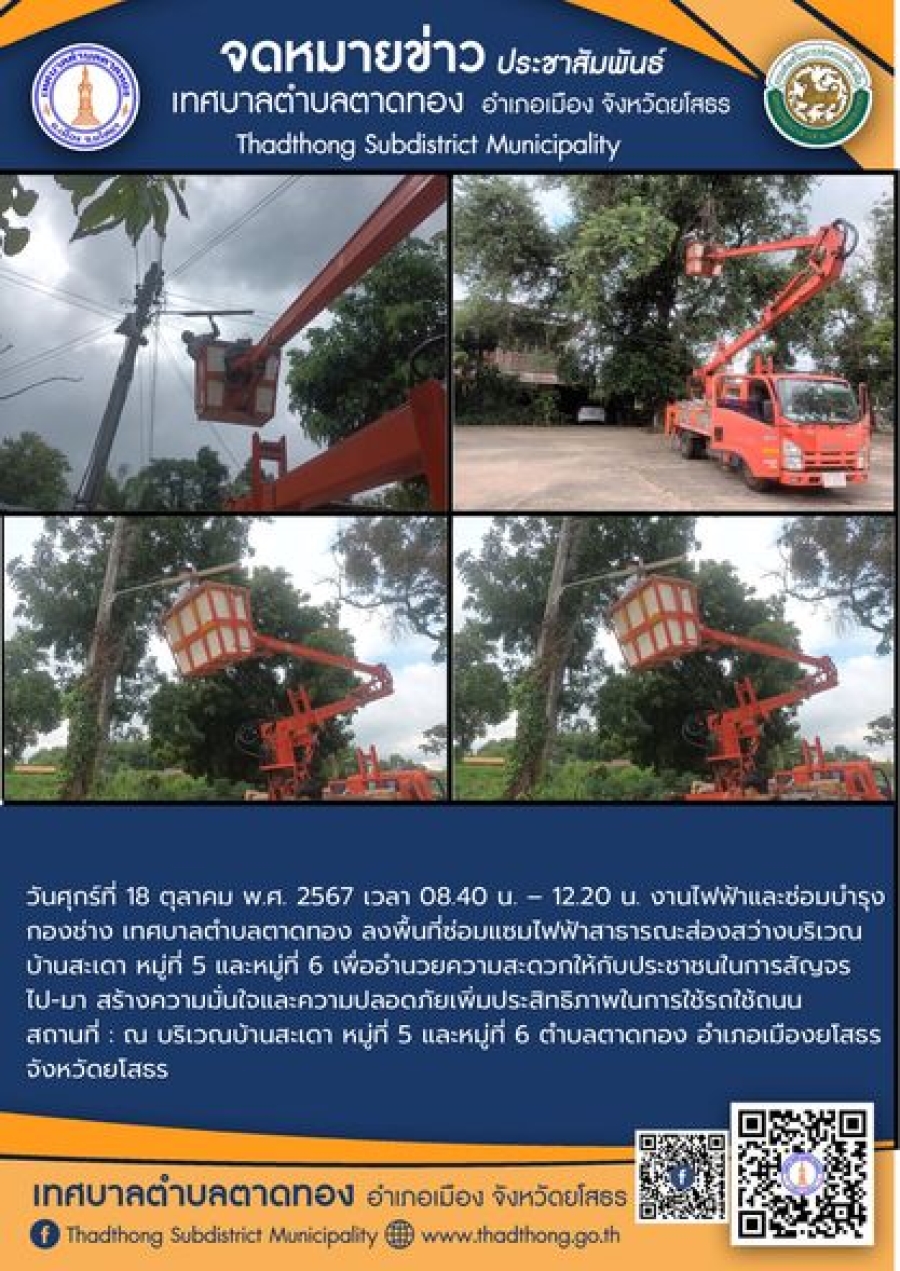 เทศบาลตำบลตาดทอง ลงพื้นที่ซ่อมแซม ไฟฟ้าสาธารณะจุดต่างๆ ในพื้นที่ตำบลตาดทอง