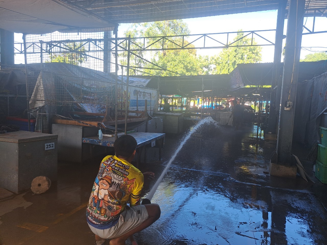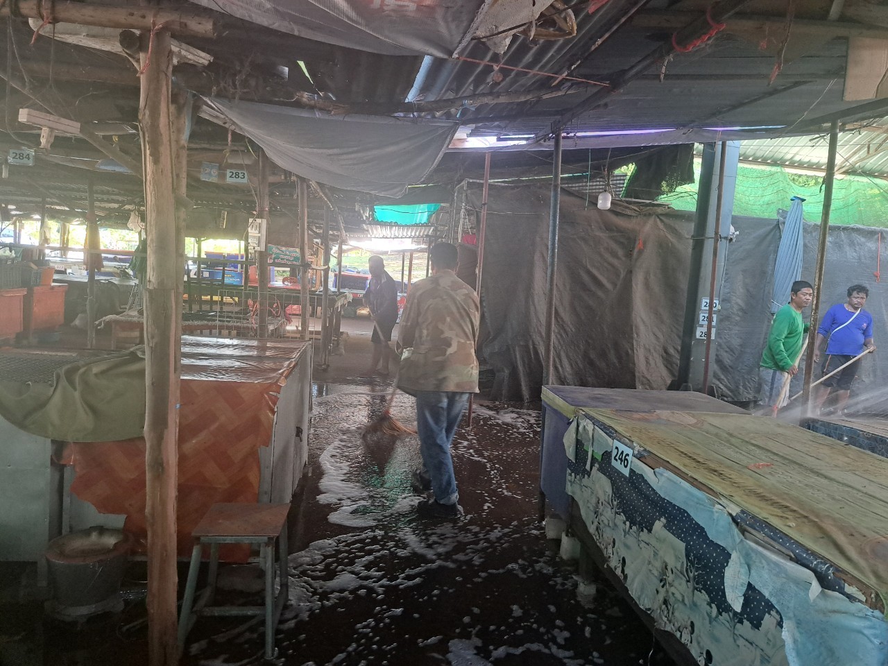 กองสาธารณสุขและสิ่งแวดล้อม ร่วมกับ งานป้องกันฯ สำนักปลัด เทศบาลตำบลตาดทอง ทำความสะอาดล้างตลาดสดเทศบาลตำบลตาดทอง