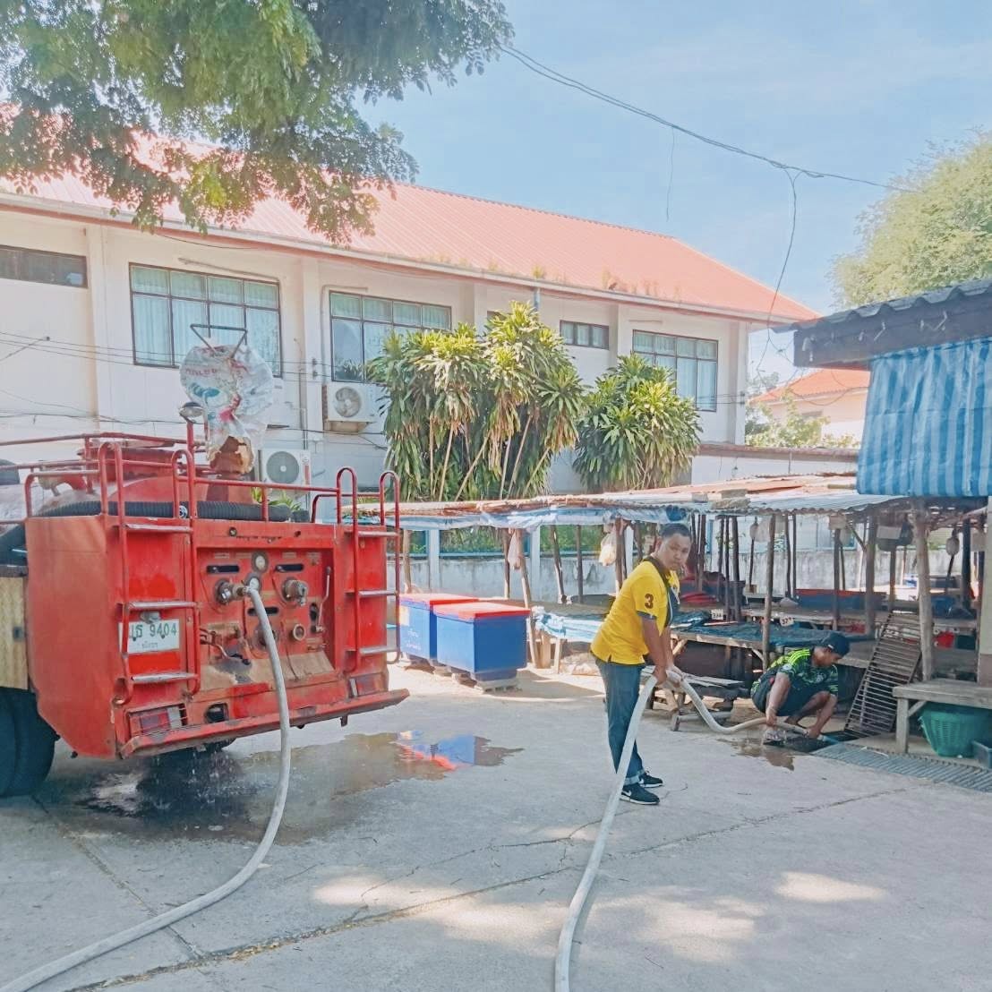 กองสาธารณสุขและสิ่งแวดล้อม ร่วมกับ งานป้องกันฯ สำนักปลัด เทศบาลตำบลตาดทอง ทำความสะอาดบริเวณคลองน้ำ และล้างตลาดสดเทศบาลตำบลตาดทอง