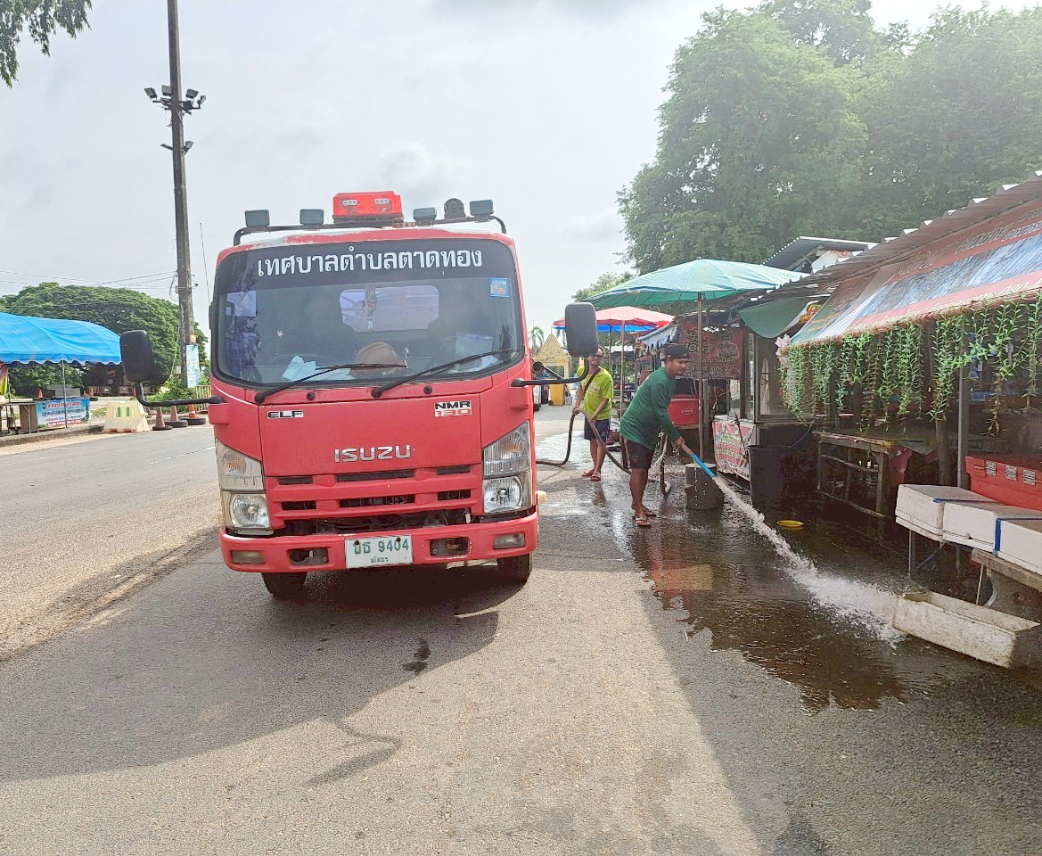 วันอังคารที่ 15 กรกฎาคม พ.ศ. 2568 เวลา 08.30 น. กองสาธารณสุขและสิ่งแวดล้อม ร่วมกับงานป้องกันฯ สำนักปลัด เทศบาลตำบลตาดทอง ลงพื้นที่ทำความสะอาด "ล้างตลาดสดเทศบาลตำบลตาดทอง" โดยทำความสะอาดล้างบริเวณคลองน้ำ และล้างตลาดสดเทศบาลตำบลตาดทอง ตามหลักสุขาภิบาล พร้อมปรับปรุงสภาพแวดล้อมภายในและภายนอกให้สะอาด ปลอดภัย ป้องกันการแพร่ระบาดของโรค สร้างความมั่นใจให้กับพ่อค้า แม่ค้า และประชาชนที่มาใช้บริการ ตลาดสดเทศบาลตำบลตาดทอง