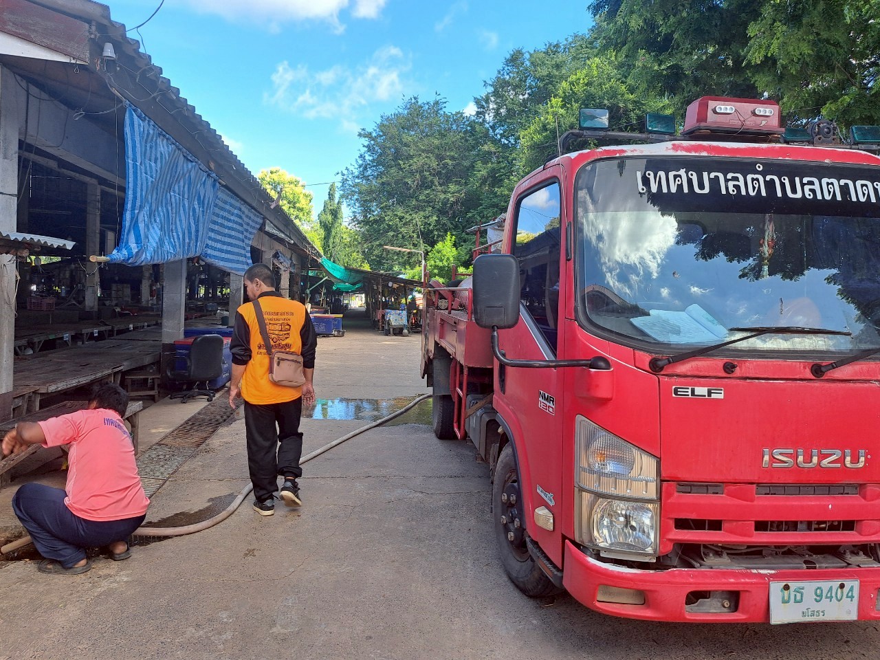 วันอังคารที่ 5 สิงหาคม พ.ศ. 2568 เวลา 08.30 น. กองสาธารณสุขและสิ่งแวดล้อม ร่วมกับงานป้องกันฯ สำนักปลัด เทศบาลตำบลตาดทอง ลงพื้นที่ทำความสะอาด "ล้างตลาดสดเทศบาลตำบลตาดทอง" โดยทำความสะอาดล้างบริเวณคลองน้ำ และล้างตลาดสดเทศบาลตำบลตาดทอง ตามหลักสุขาภิบาล พร้อมปรับปรุงสภาพแวดล้อมภายในและภายนอกให้สะอาด ปลอดภัย ป้องกันการแพร่ระบาดของโรค สร้างความมั่นใจให้กับพ่อค้า แม่ค้า และประชาชนที่มาใช้บริการ ตลาดสดเทศบาลตำบลตาดทอง