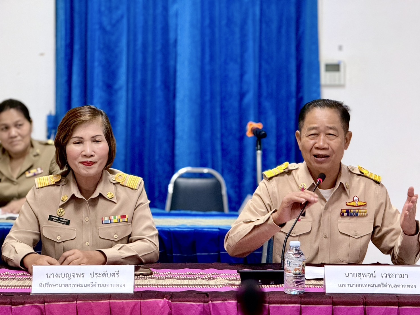 วันจันทร์ที่ 22 กันยายน พ.ศ. 2568 เวลา 09.00 น. ที่ผ่านมา นางสาวภัคสุนันท์ คำลือ นายกเทศมนตรีตำบลตาดทอง เป็นประธานการประชุม พร้อมด้วย คณะผู้บริหาร หัวหน้าส่วนราชการ ปลัดอำเภอเมืองยโสธร ในนามภาคีเครือข่าย โดยมีการหารือข้อราชการต่างๆ เกี่ยวกับการบริหารงานของผู้บริหารท้องถิ่น และหารือกำหนดการงานทำบุญเลี้ยงพระสำนักงานเทศบาลตำบลตาดทอง เพื่อขับเคลื่อนการพัฒนาร่วมกันอย่างมีประสิทธิภาพและเกิดประสิทธิผลในพื้นที่ตำบลตาดทองต่อไป ปิดประชุม เวลา 10.20 น.