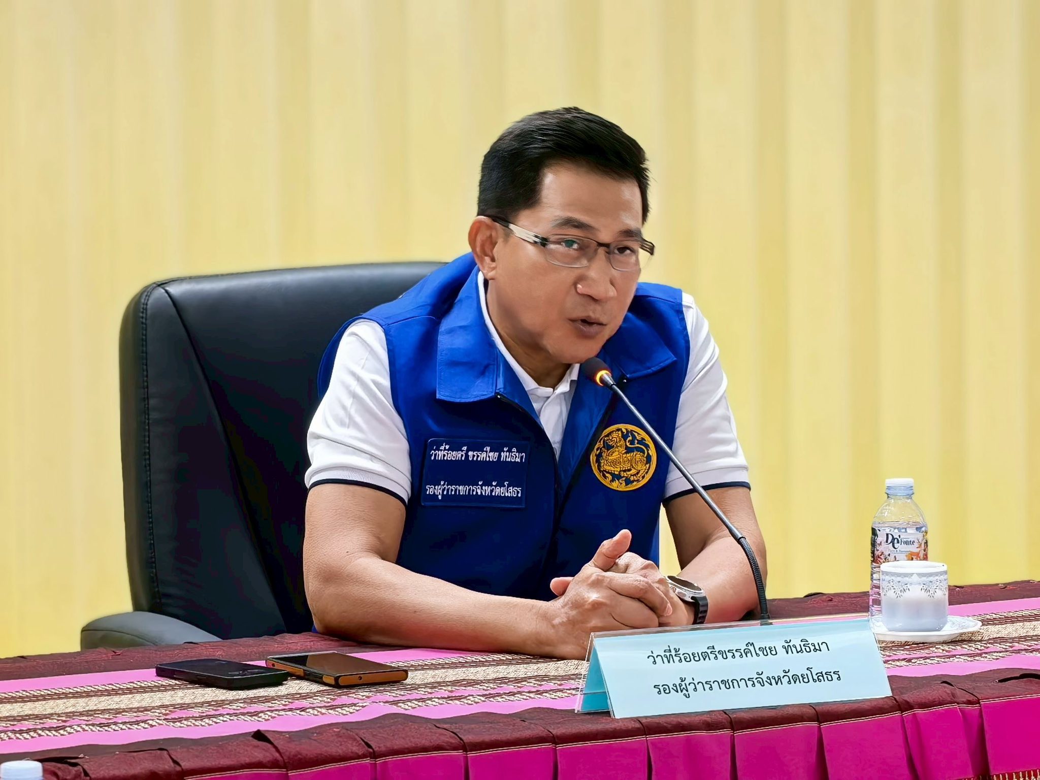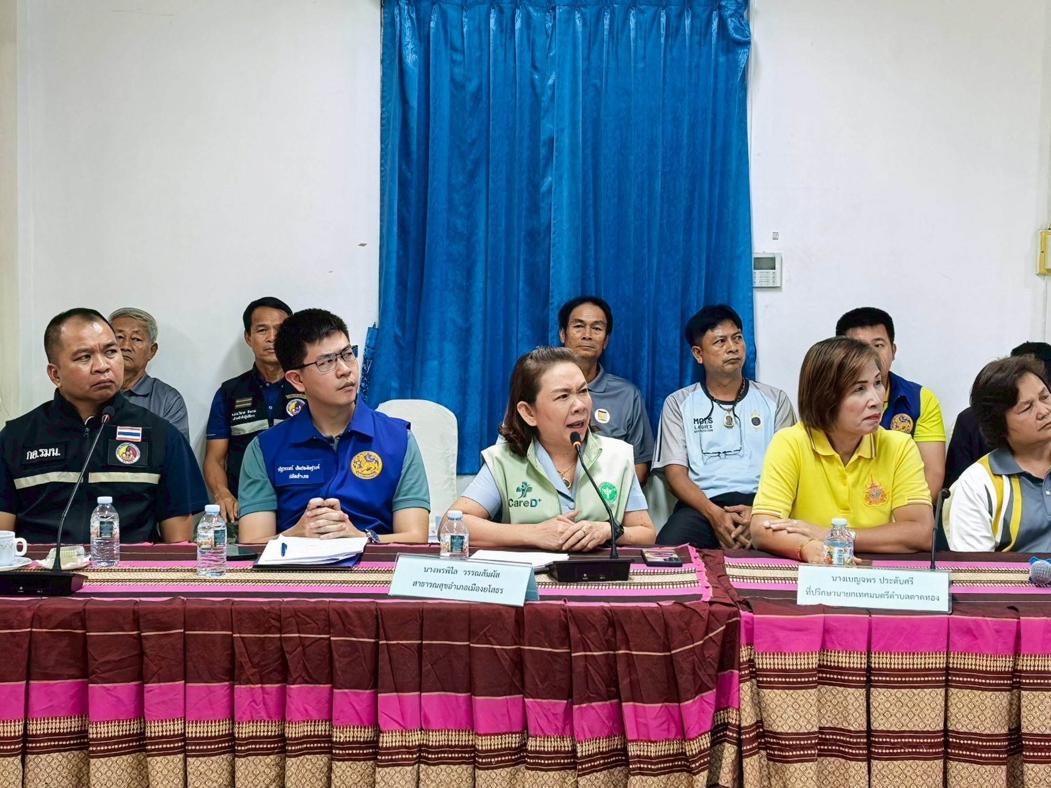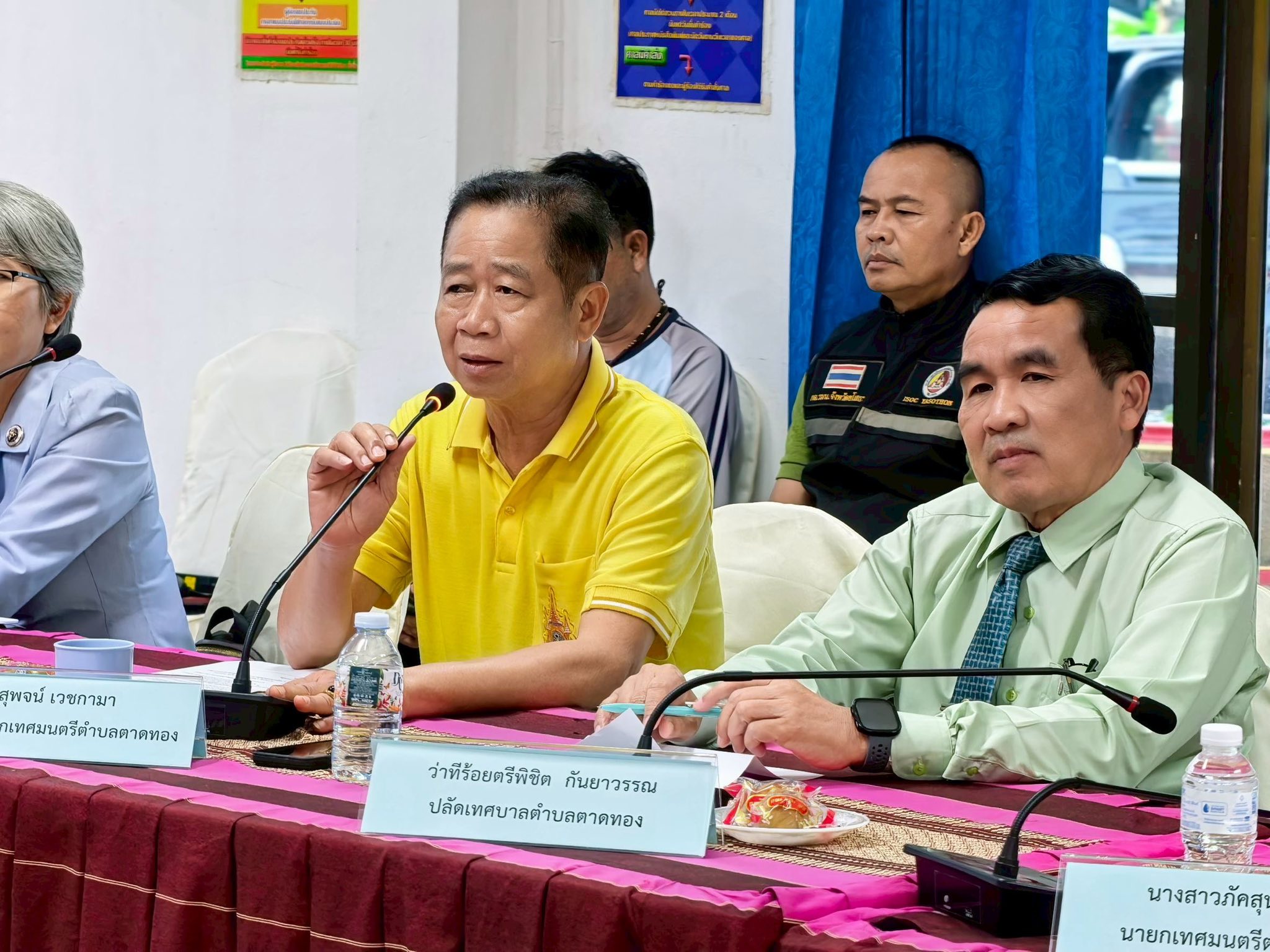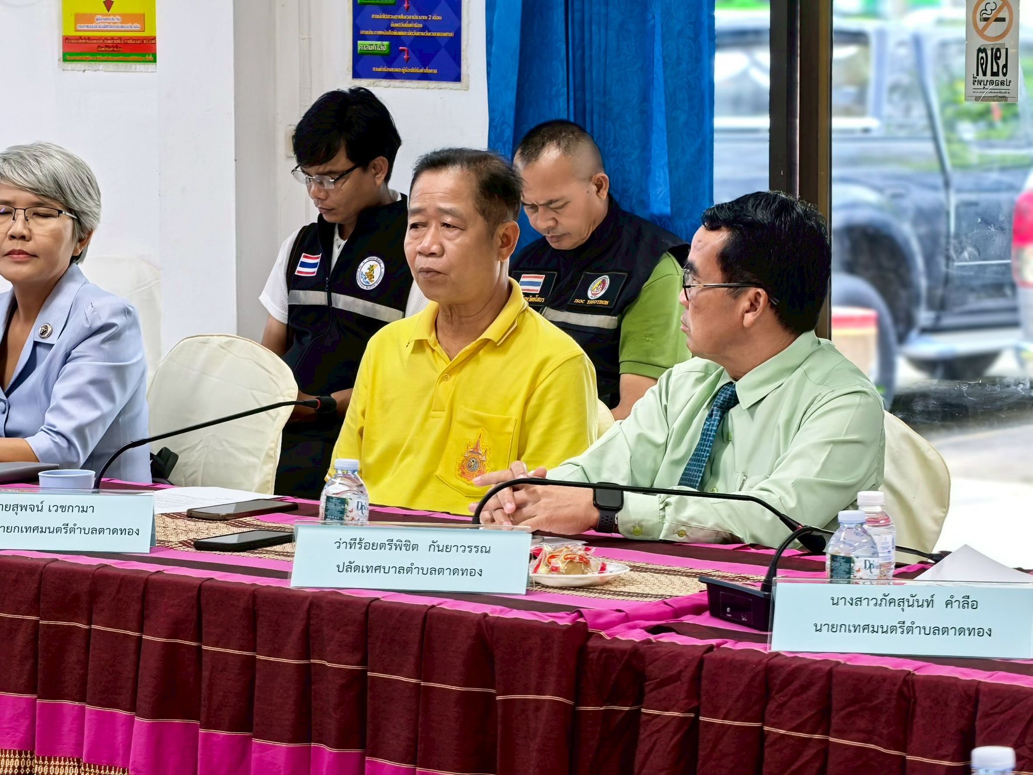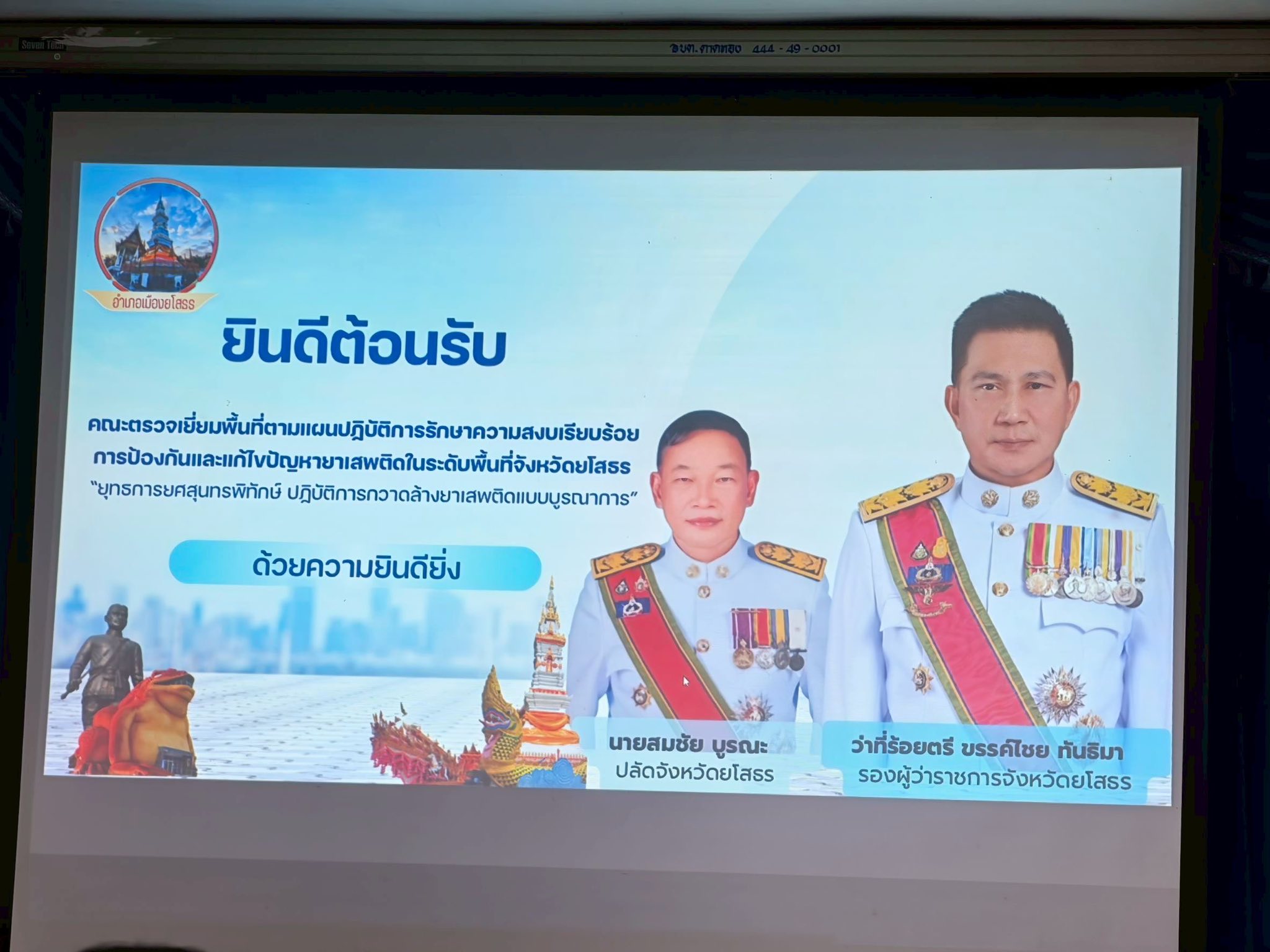 วันพุธที่ 1 ตุลาคม 2568 เวลา 16.00 น. นางสาวภัคสุนันท์ คำลือ นายกเทศมนตรีตำบลตาดทอง เข้าร่วมประชุมภาคีเครือข่าย โดยมี ว่าที่ร้อยตรีขรรค์ไชย ทันธิมา รองผู้ว่าราชการจังหวัดยโสธร พร้อมด้วย นายสมชัย บูรณะ ปลัดจังหวัดยโสธร นายวิเชียร สุดาทิพย์ นายอำเภอเมืองยโสธร นายนพพล อุปสุข ปลัดอำเภอเมืองยโสธร (ฝ่ายความมั่นคง) คณะผู้บริหารเทศบาลฯ สมาชิกสภาเทศบาลฯ ส่วนหน้าส่วนราชการ เทศบาลตำบลตาดทอง กำนัน ผู้ใหญ่บ้าน แพทย์ประจำตำบล สารวัตรกำนัน ผู้ช่วยผู้ใหญ่บ้านตำบลตาดทอง และตัวแทนจากหน่วยงานต่างๆ ทั้งภาครัฐและภาคเอกชน เข้าร่วมประชุมภาคีเครือข่ายตามแผนปฏิบัติการรักษาความสงบเรียบร้อย การป้องกันและแก้ไขปัญหายาเสพติดในระดับพื้นที่จังหวัดยโสธร ตามแผน “ยุทธการยศสุนทรพิทักษ์ ปฏิบัติการกวาดล้างยาเสพติดแบบบูรณาการ”