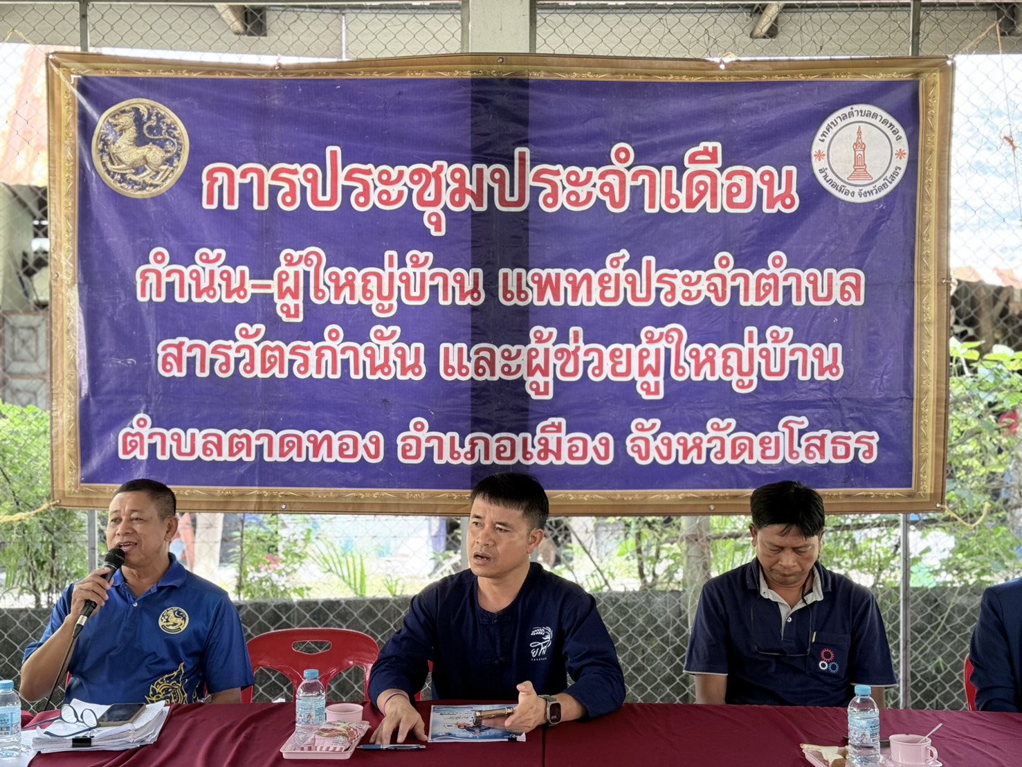 นายกภัคสุนันท์ ร่วมประชุมกำนัน-ผู้ใหญ่บ้านสัญจร ตำบลตาดมุ่งบูรณาการทำงานใกล้ชิดประชาชน
