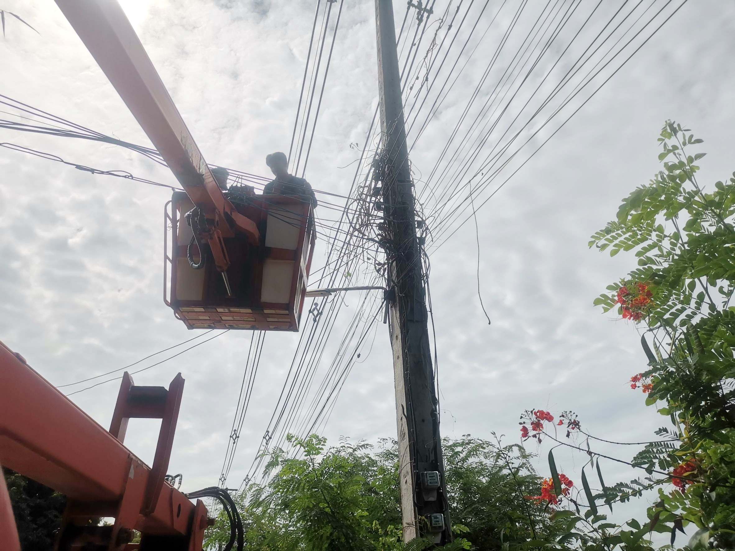 เทศบาลตำบลตาดทอง ลงพื้นที่ซ่อมแซมไฟฟ้าส่องสว่างสาธารณะในพื้นที่ตำบลตาดทอง อำเภอเมืองยโสธร จังหวัดยโสธร