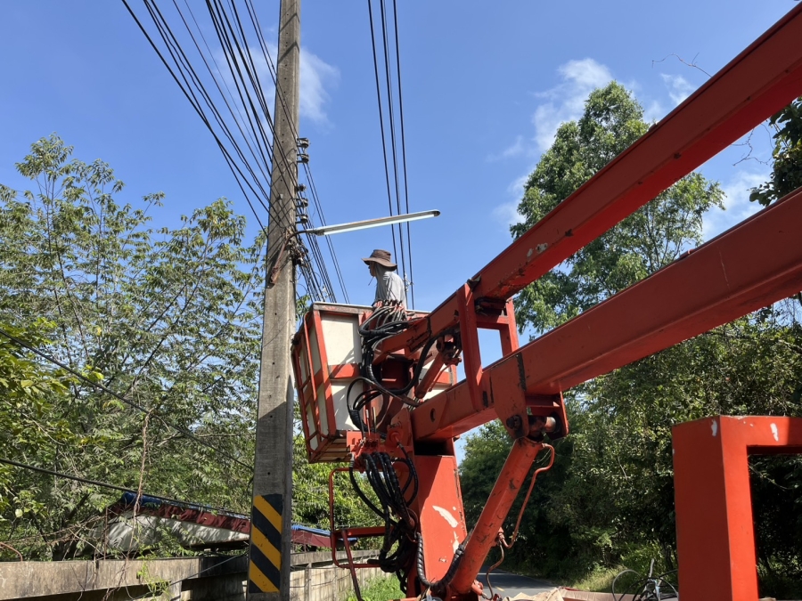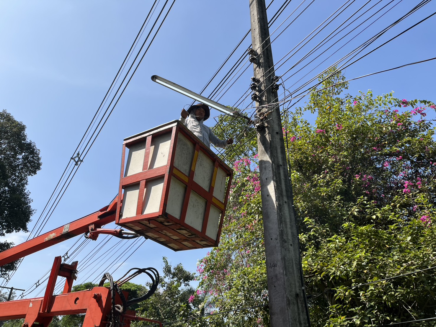 เทศบาลตำบลตาดทอง ลงพื้นที่ซ่อมแซมไฟฟ้าส่องสว่างสาธารณะในพื้นที่ตำบลตาดทอง อำเภอเมืองยโสธร จังหวัดยโสธร
