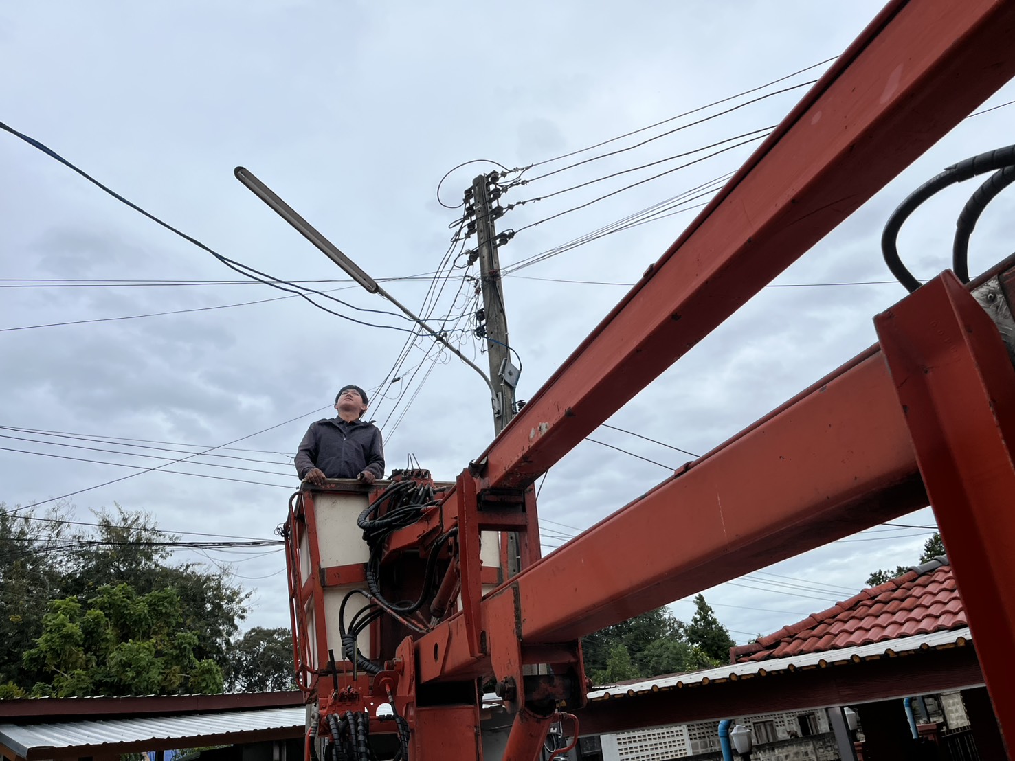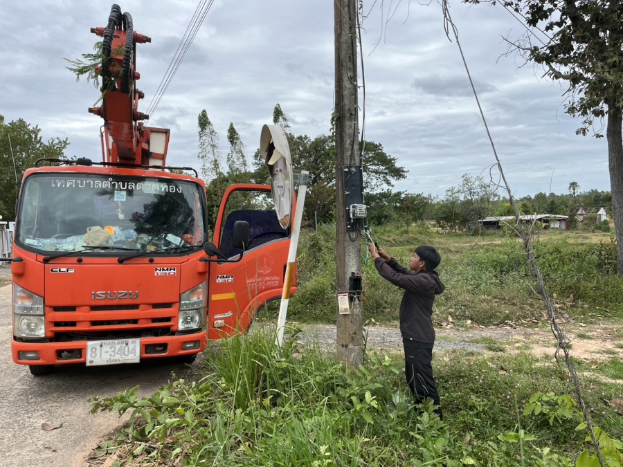 เทศบาลตำบลตาดทอง ลงพื้นที่ซ่อมแซมไฟฟ้าส่องสว่างสาธารณะในพื้นที่ตำบลตาดทอง อำเภอเมืองยโสธร จังหวัดยโสธร