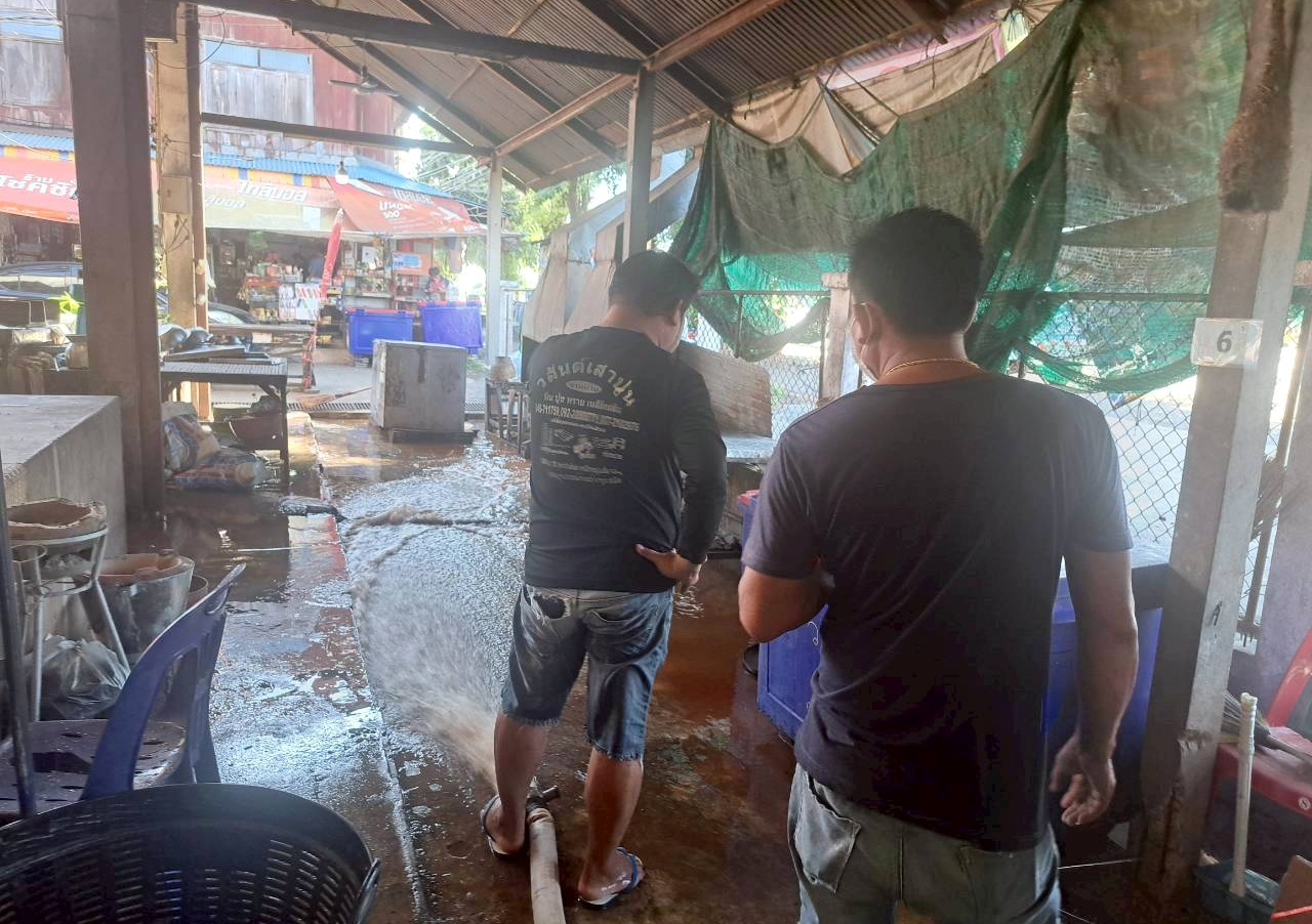 กองสาธารณสุขและสิ่งแวดล้อม ร่วมกับ งานป้องกันฯ สำนักปลัด เทศบาลตำบลตาดทอง ทำความสะอาดบริเวณคลองน้ำ และล้างตลาดสดเทศบาลตำบลตาดทอง ตำบลตาดทอง อำเภอเมืองยโสธร จังหวัดยโสธร