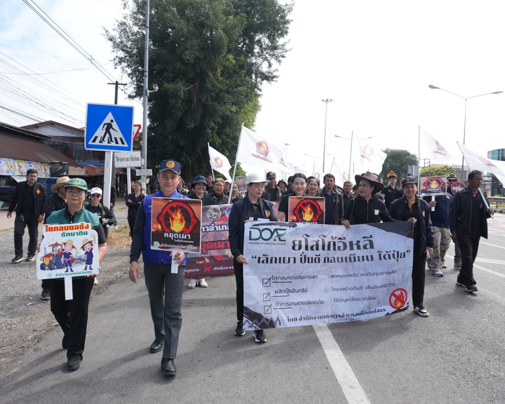 เทศบาลตำบลตาดทอง ร่วมประชุมกำนัน-ผู้ใหญ่บ้านสัญจร ตำบลตาดทอง และร่วมกิจกรรมเดินรณรงค์กิจกรรมเคาะประตูบ้าน "งดเผา ลดฝุ่น เพื่อคุณ เพื่อเรา" ครบทุกหมู่บ้าน ปี พ.ศ. 2568-2569
