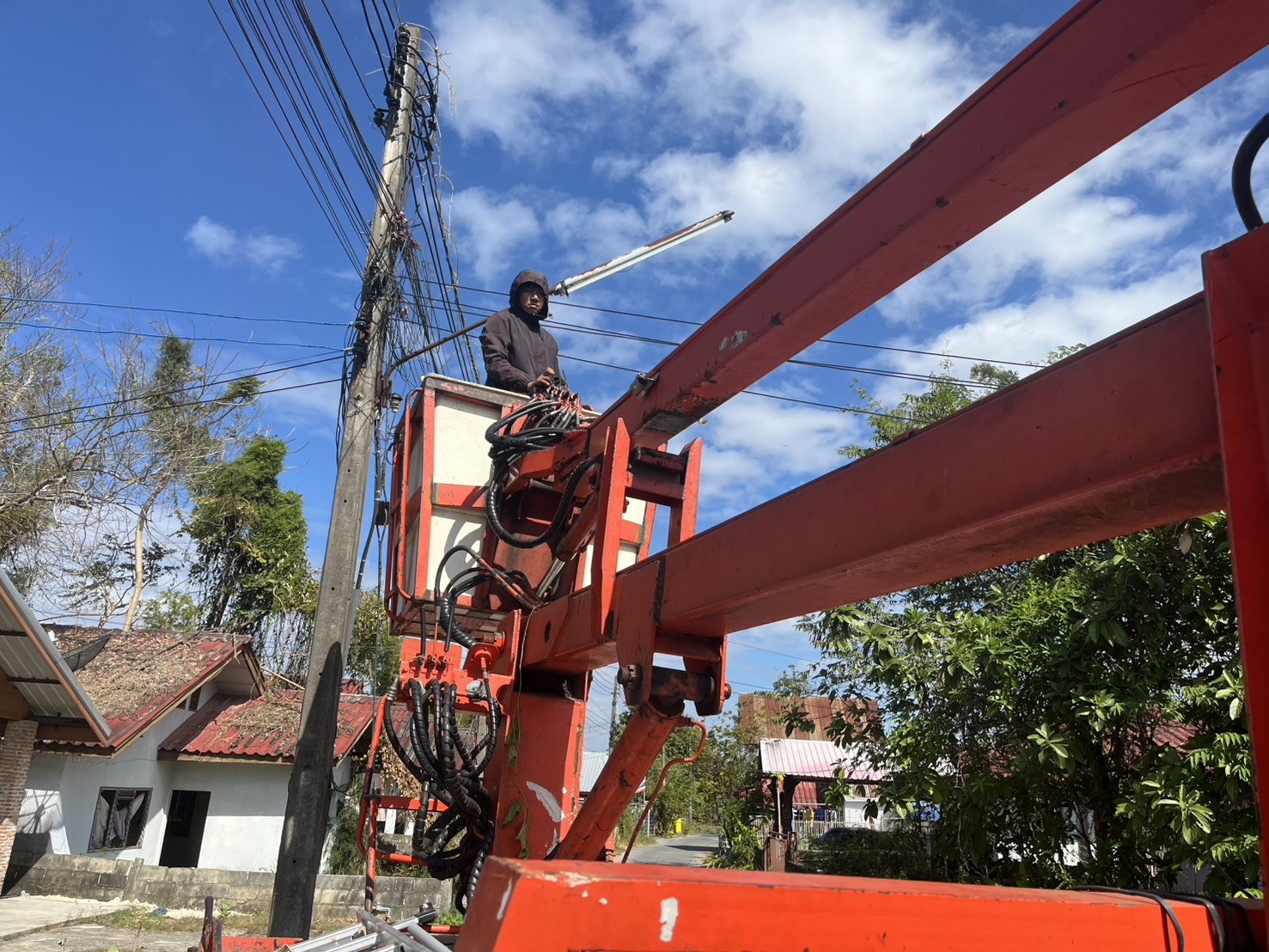 เทศบาลตำบลตาดทอง ลงพื้นที่ซ่อมแซมไฟฟ้าส่องสว่างสาธารณะในพื้นที่ตำบลตาดทอง อำเภอเมืองยโสธร จังหวัดยโสธร