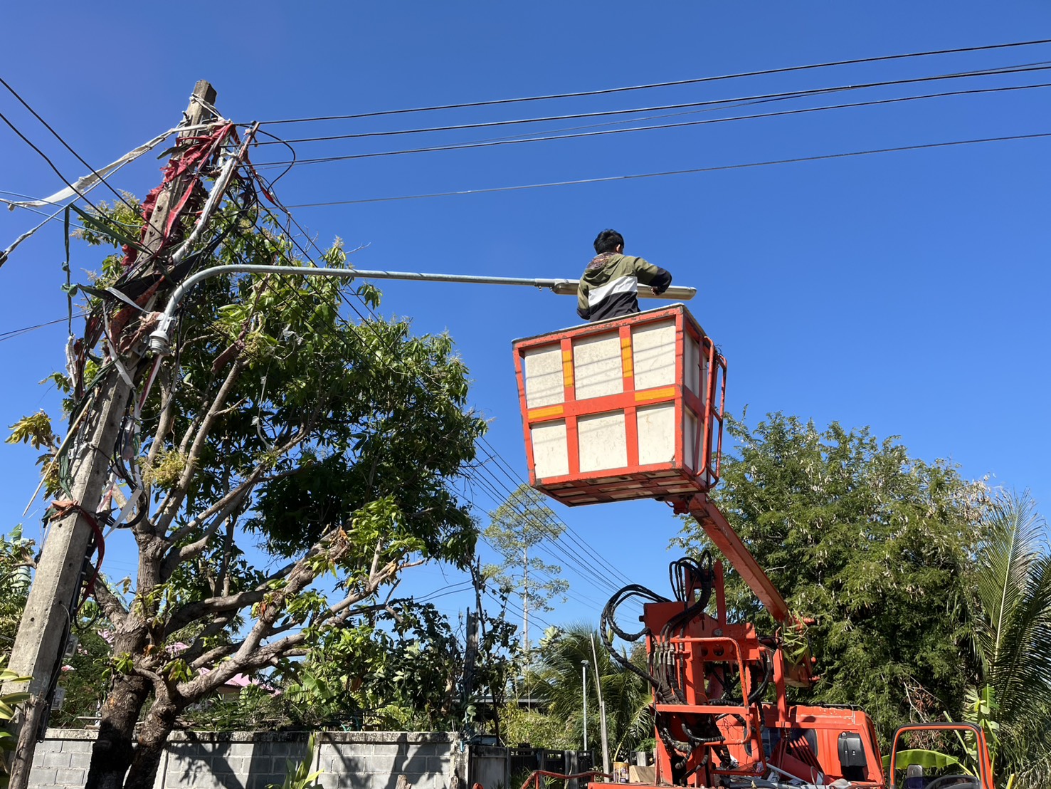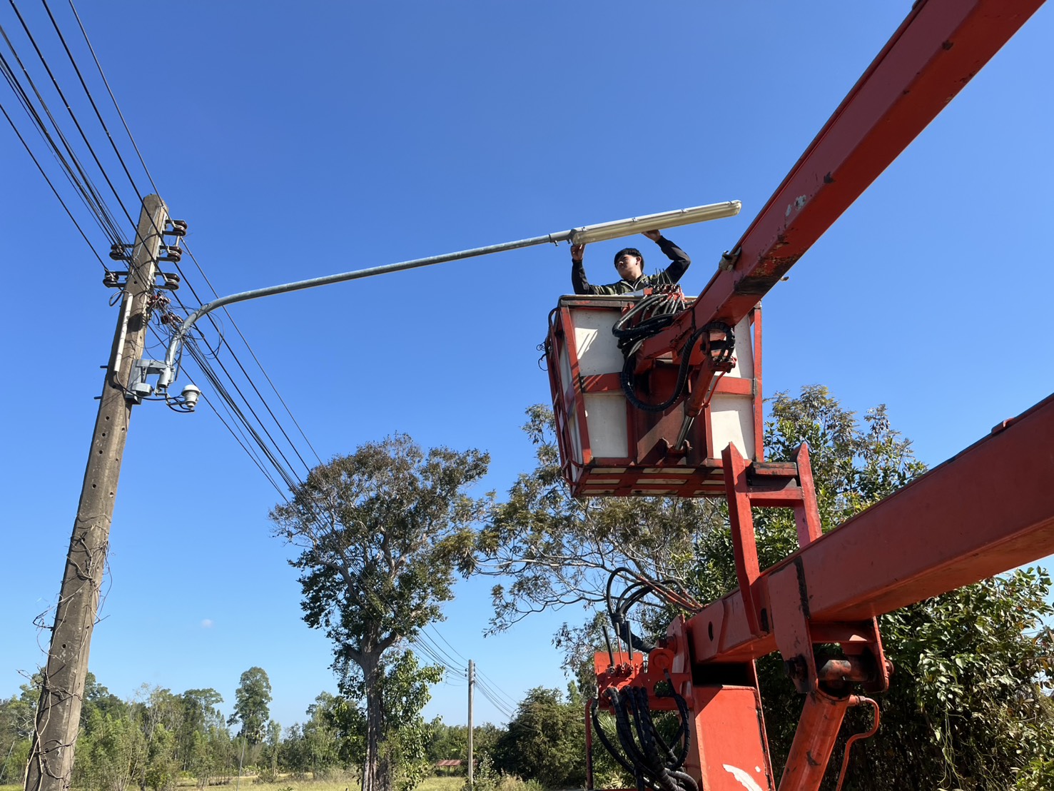เทศบาลตำบลตาดทอง ลงพื้นที่ซ่อมแซมไฟฟ้าส่องสว่างสาธารณะในพื้นที่ตำบลตาดทอง อำเภอเมืองยโสธร จังหวัดยโสธร