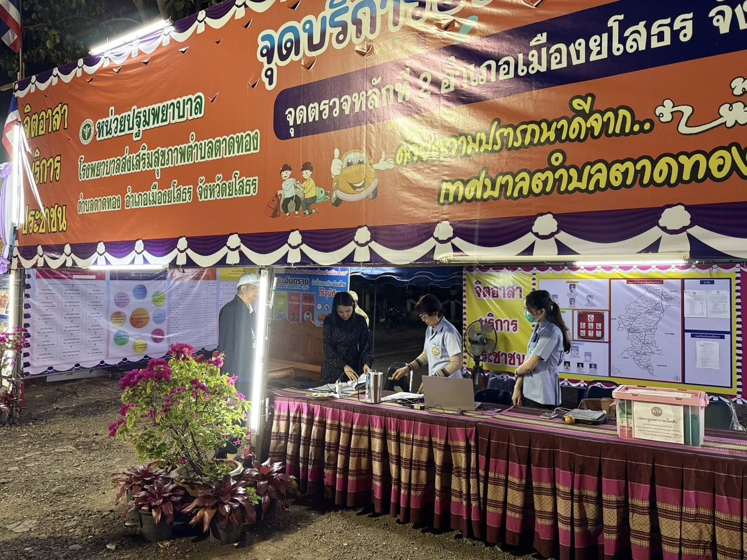 วันอังคารที่ 30 ธันวาคม พ.ศ. 2568 เวลา 20.30 น. เข้าตรวจเยี่ยมให้กำลังใจและมอบของที่จุดบริการประชาชนช่วงเทศกาลปีใหม่ 2569 พร้อมด้วย นายสุพจน์ เวชกามา เลขานุการนายกเทศมนตรีตำบลตาดทอง โดยมี ผู้นำชุมชน แพทย์ประจำตำบล เจ้าหน้าที่ตำรวจประจำจุดตรวจ เจ้าหน้าที่อาสาสมัครป้องกันภัยฝ่ายพลเรือน ร่วมกำกับดูแลที่จุดตรวจเพื่อให้ประชาชนเดินทางสัญจรอย่างปลอดภัยในค่ำคืนวันนี้