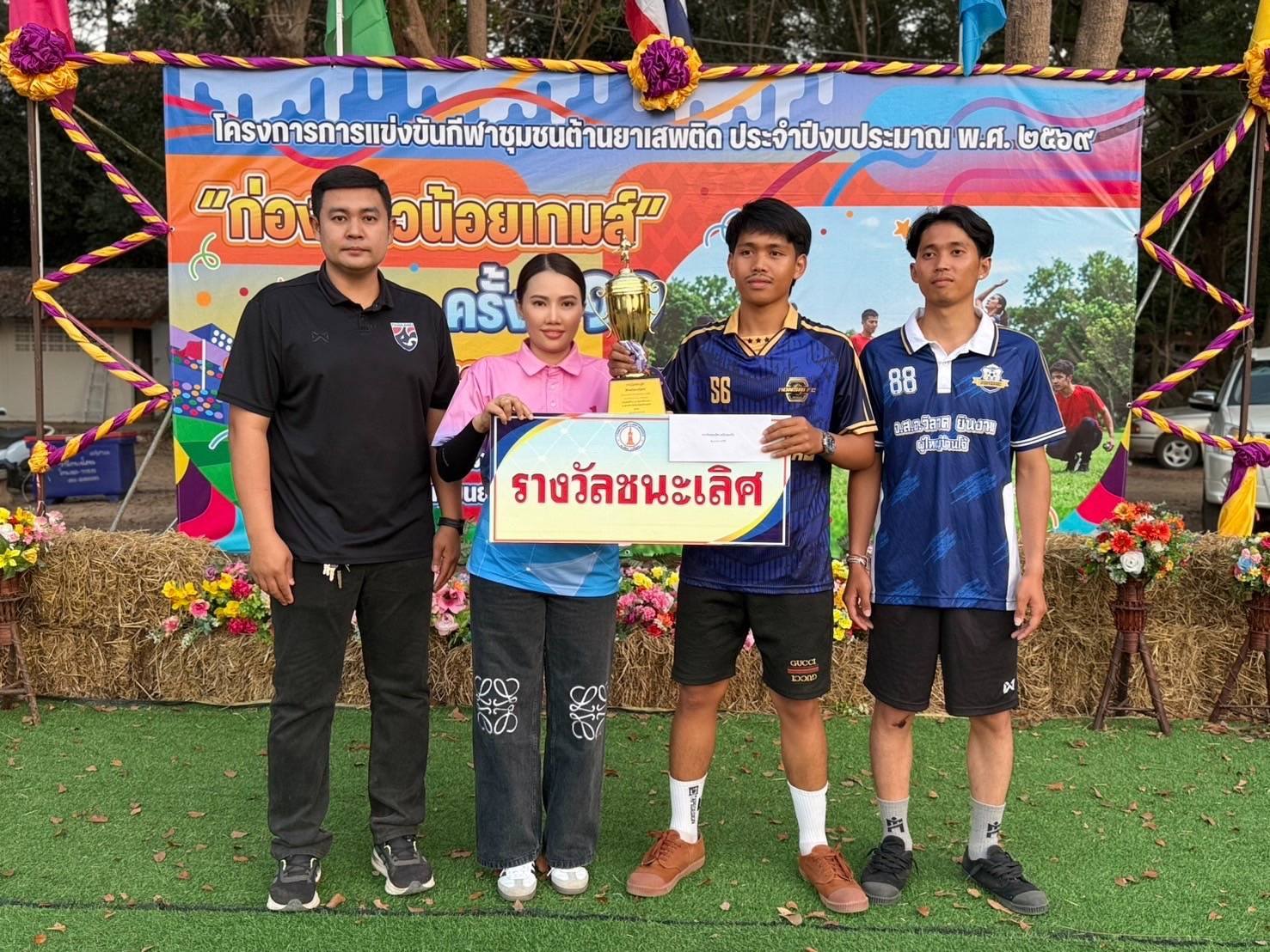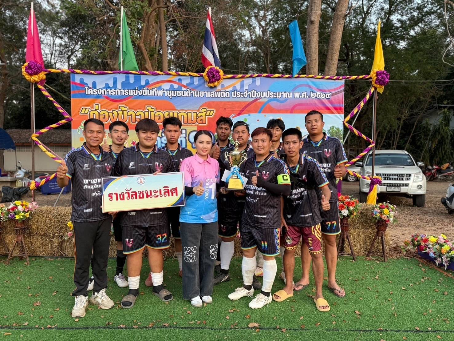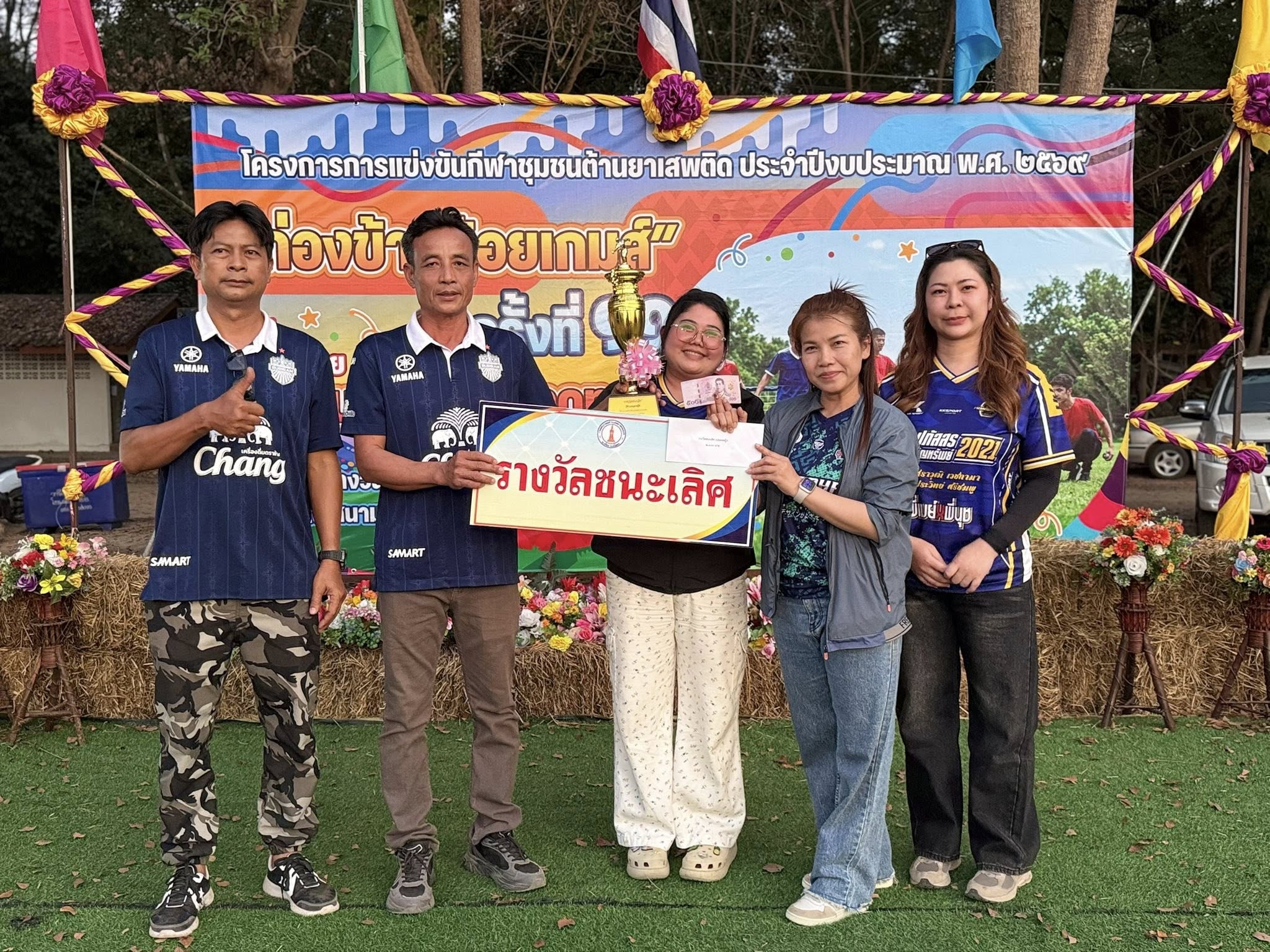 พร้อมชม เชียร์ เป็นกำลังใจให้กับการแข่งขันกีฬาฯ และมอบถ้วยรางวัลชนะเลิศ กีฬาประเภทต่างๆ งานแข่งขันกีฬาชุมชนต้านยาเสพติดตำบลตาดทอง “ ก่องข้าวน้อยเกมส์” ครั้งที่ 11 ประจำปีงบประมาณ พ.ศ.2569