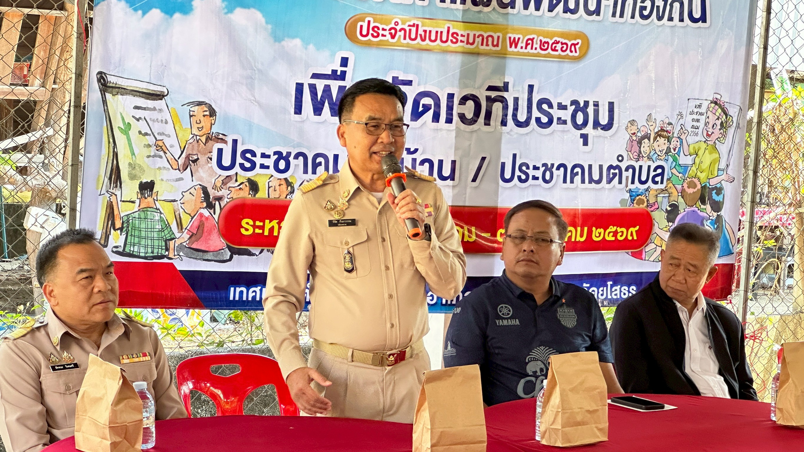 วันจันทร์ที่ 16 มีนาคม พ.ศ. 2569 เวลา 09.30 น. นางสาวภัคสุนันท์ คำลือ นายกเทศมนตรีตำบลตาดทอง มอบหมายให้ นางสาวกนกพร ทาระพันธ์ รองปลัดเทศบาลฯ เป็นประธานเปิดโครงการจัดทำแผนพัฒนาท้องถิ่น ประจำปีงบประมาณ พ.ศ.2569 การประชาคมหมู่บ้าน/ประชาคมตำบล โดยมี คณะผู้บริหารเทศบาลฯ สมาชิกสภาเทศบาลฯ ว่าที่ร้อยตรีพิชิต กันยาวรรณ ปลัดเทศบาลฯ นายประเสริฐ ชูรัตน์ ผู้อำนวยการกองช่าง นางสาวจันทร์ทิรา ทาระพันธ์ หัวหน้าสำนักปลัด ตัวแทนหน่วยงานราชการภาคีเครือข่ายในพื้นที่ตำบลตาดทอง นางสาวสุจินดา รสสภา นักวิเคราะห์นโยบายฯ นางสาวศวิตฉันท์ จันทา นักประชาสัมพันธ์ ผู้นำชุมชน ประชาชนในพื้นที่ และพนักงานเทศบาลตำบลตาดทอง ลงพื้นที่เพื่อทบทวนแผนพัฒนาท้องถิ่น (พ.ศ.2566 – 2570) ปรับปรุง เปลี่ยนแปลง เพิ่มเติมแผน และมีการประชาคมสอบถามปัญหาความเดือนร้อน ความต้องการของประชาชนในพื้นที่ตำบลตาดทอง