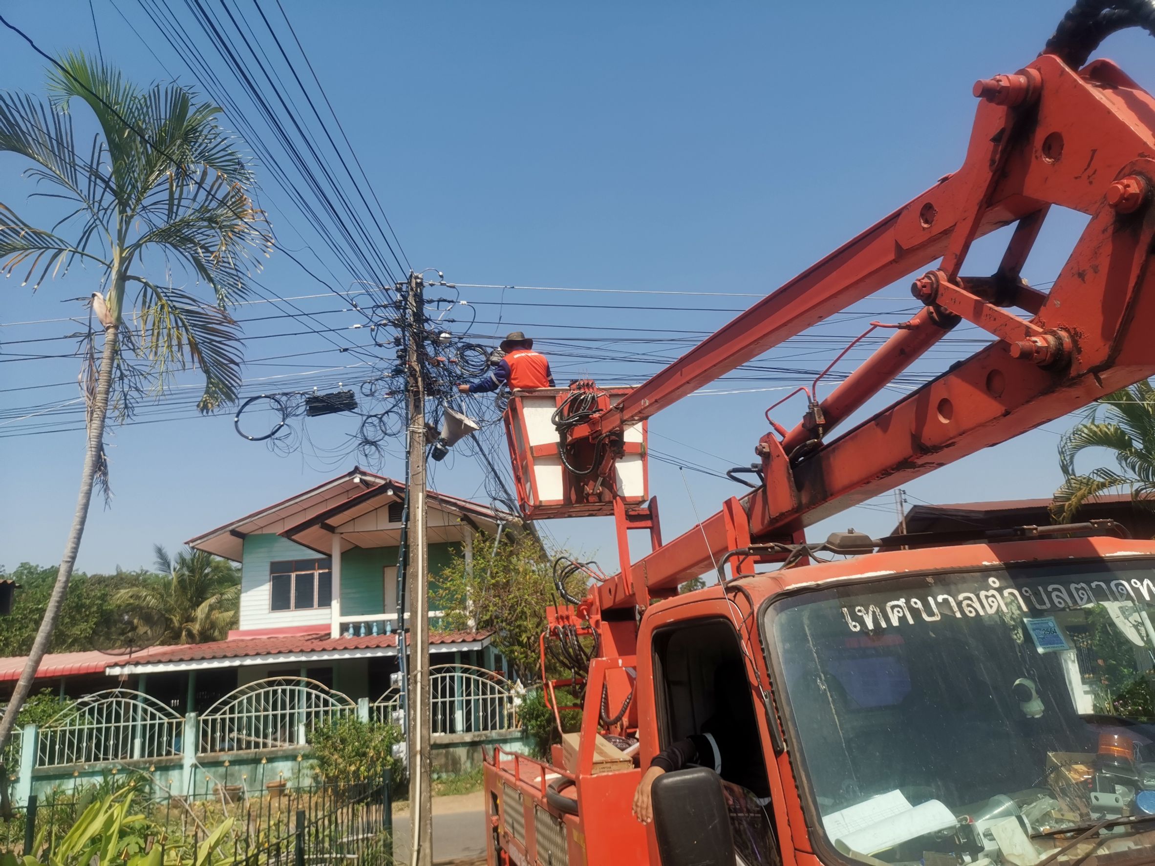 เทศบาลตำบลตาดทอง ลงพื้นที่ซ่อมแซมไฟฟ้าส่องสว่าง ไฟฟ้าสาธารณะประโยชน์ ในพื้นที่ตำบลตาดทอง อำเภอเมืองยโสธร จังหวัดยโสธร