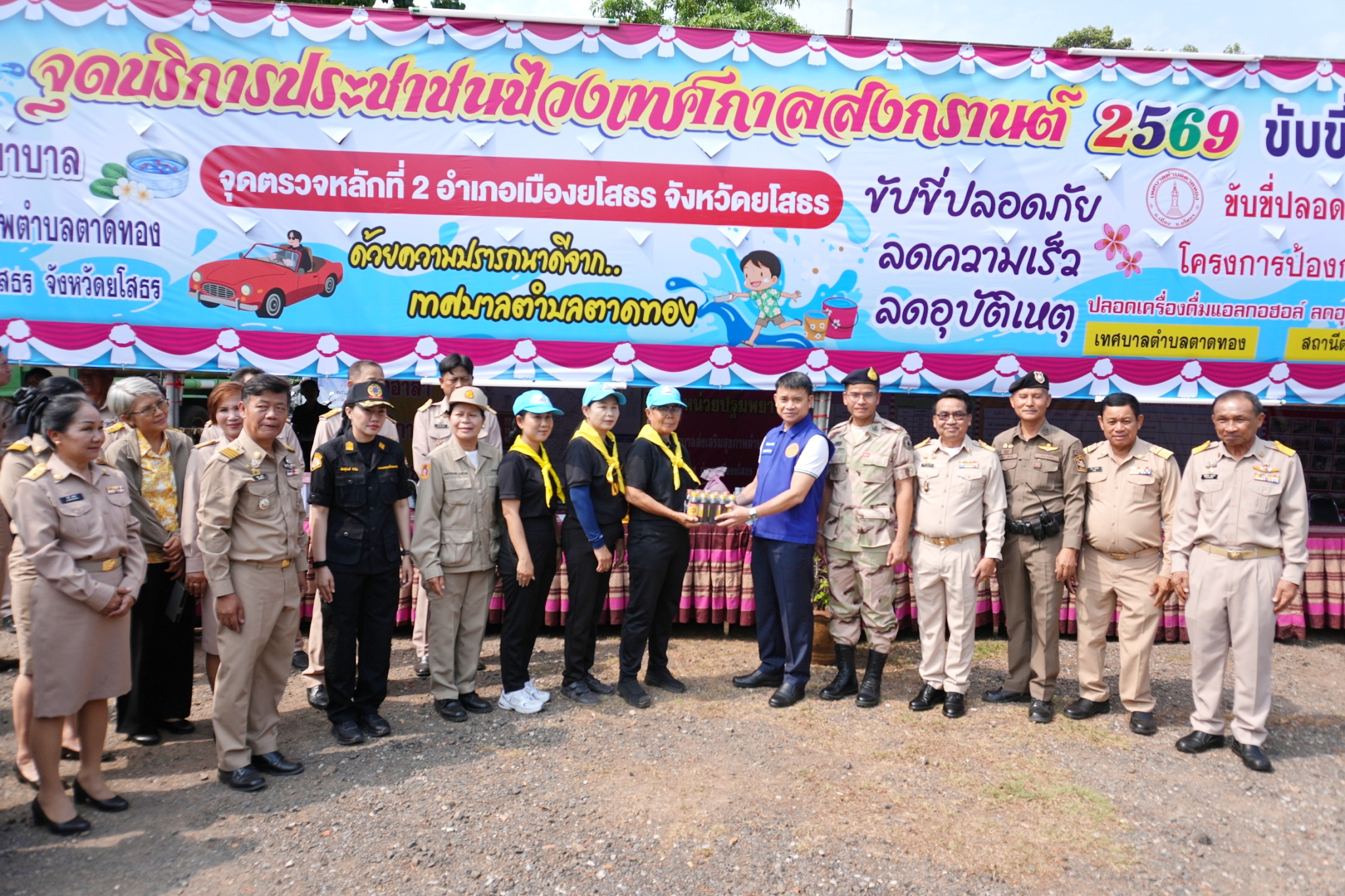 วันศุกร์ที่ 10 เมษายน พ.ศ. 2569 เวลา 10.00 น. นางสาวภัคสุนันท์ คำลือ นายกเทศมนตรีตำบลตาดทอง กล่าวรายงานโครงการ “ป้องกันและลดอุบัติเหตุทางถนนช่วงสงกรานต์ พ.ศ. 2569” ขับขี่ปลอดภัย ขับขี่อย่างมีวินัย ขับขี่อย่างมีน้ำใจ รักษาวินัยจราจร โดยมี นายภัทรพล สารการ นายอำเภอเมืองยโสธร เป็นประธานเปิดโครงการฯ พร้อมด้วย คณะผู้บริหารเทศบาลฯ สมาชิกสภาเทศบาลฯ หัวหน้าส่วนราชการ ผู้นำชุมชนตำบลตาดทอง พนักงานเทศบาลฯ สมาชิกอาสาสมัครป้องกันภัยฝ่ายพลเรือน และเจ้าหน้าที่จากหน่วยงานต่างๆ ทั้งภาครัฐ ภาคเอกชน เพื่อมุ่งเน้นยกระดับความปลอดภัยทางถนนช่วงเทศกาลสงกรานต์ 2569 โอกาสนี้ นายวิเชียร สุดาทิพย์ ปลัดจังหวัดยโสธร ได้เดินทางมาตรวจเยี่ยมให้กำลังใจ จุดบริการประชาชนช่วงเทศกาลสงกรานต์ ปี พ.ศ. 2569 เทศบาลตำบลตาดทอง พร้อมเน้นย้ำมาตรการการกรวดขันวินัยจราจรทางบก การเพิ่มแสงสว่างในพื้นที่เสี่ยงอีกให้เกิดความปลอดภัยสูงสุด เพื่อให้การเดินทางเป็นไปอย่างปลอดภัยและมีความสุข และลดการสูญเสียทั้งชีวิตและทรัพย์สิน